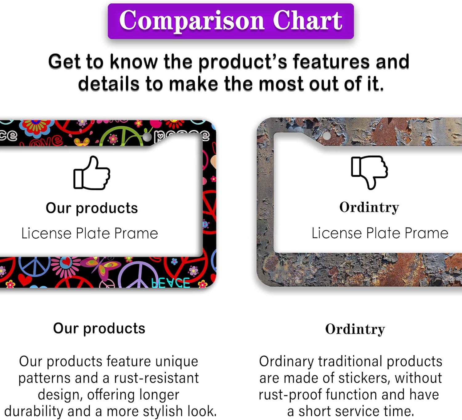 - ALUMINUM FRAME: This License Plate Frame is crafted from high-quality aluminum that is resistant to corrosion, rust, and harsh weather conditions. Its rugged reliability design ensures a long lifespan, making it capable of withstanding car washes and extreme weather, providing you with a reliable and stylish solution for your vehicle.