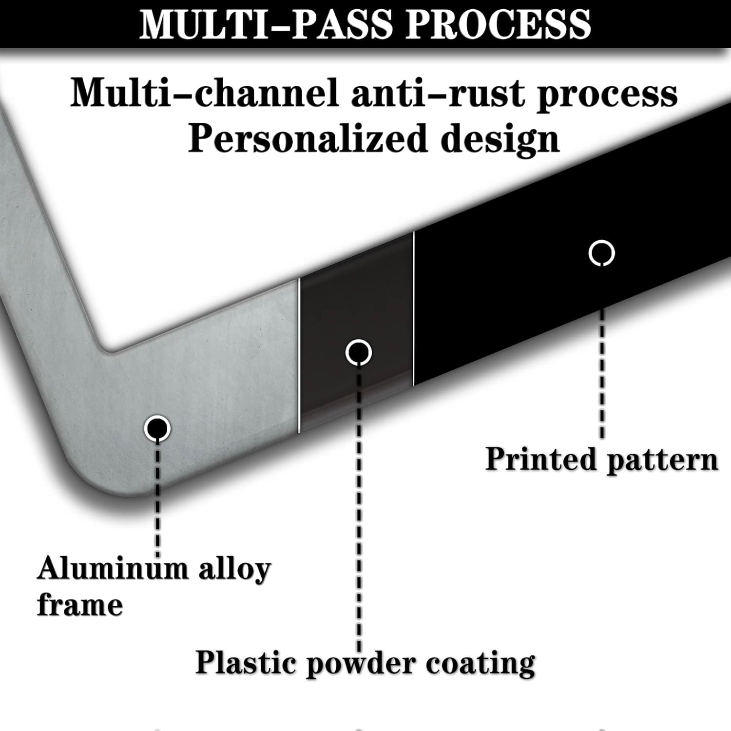 - ALUMINUM FRAME: This License Plate Frame is crafted from high-quality aluminum that is resistant to corrosion, rust, and harsh weather conditions. Its rugged reliability design ensures a long lifespan, making it capable of withstanding car washes and extreme weather, providing you with a reliable and stylish solution for your vehicle.