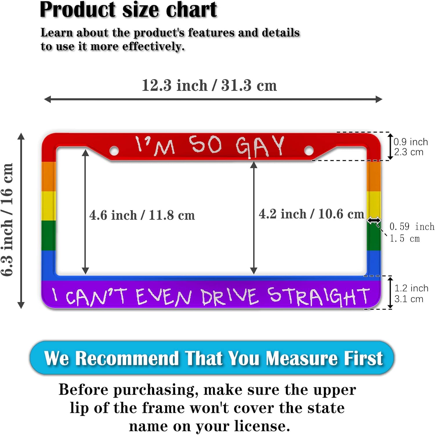 License Plate Frames Rainbow Automotive Exterior Accessories I'm So Gay I Can’t Even Drive Straight Aluminum Metal Car Accessory 2 Pack with Screw Covers Set