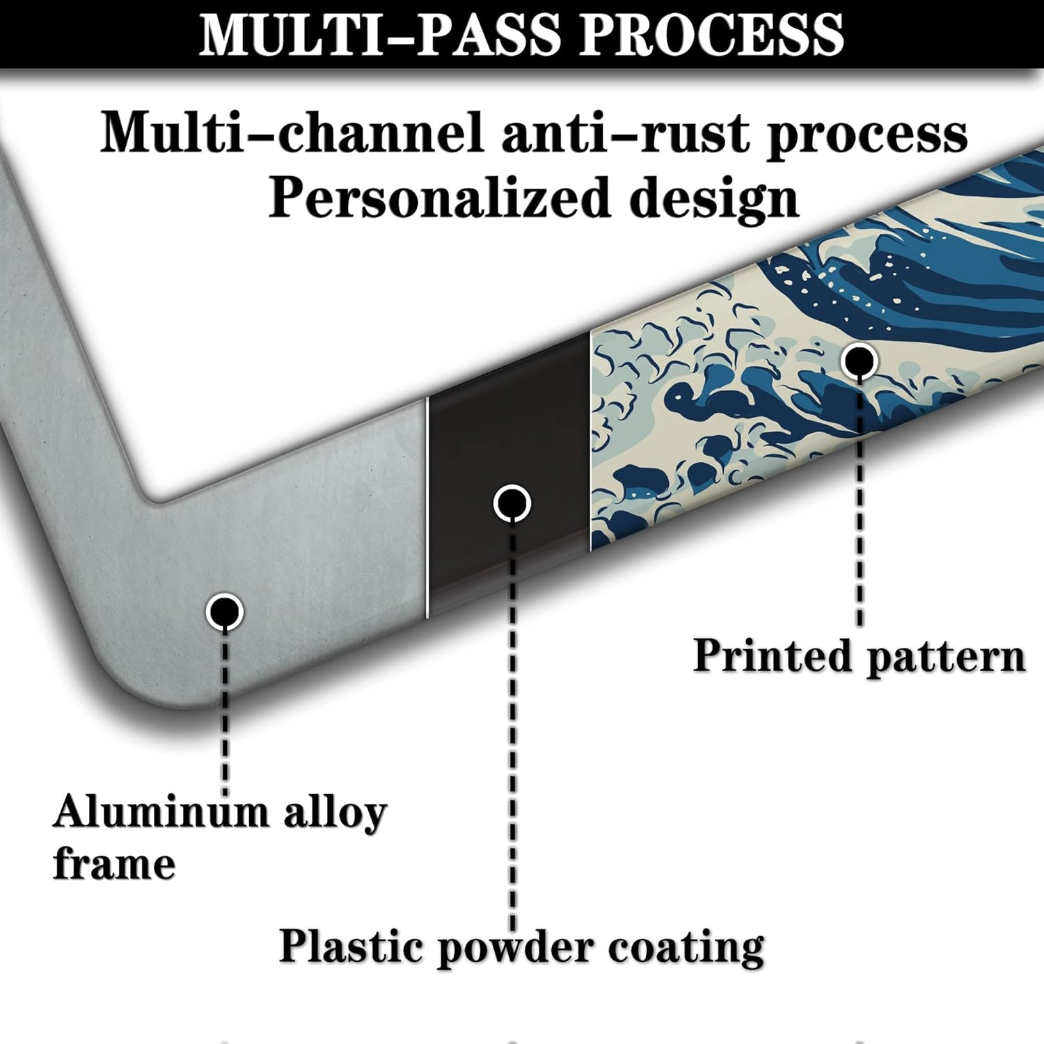 - ALUMINUM FRAME: This License Plate Frame is crafted from high-quality aluminum that is resistant to corrosion, rust, and harsh weather conditions. Its rugged reliability design ensures a long lifespan, making it capable of withstanding car washes and extreme weather, providing you with a reliable and stylish solution for your vehicle.
