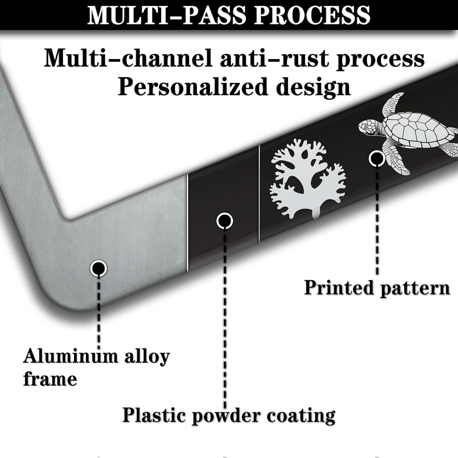 Automotive Exterior Accessories Black and White License Plate Frames Turtle Aluminum Metal Car Accessory 2 Pack with Screw Covers Set