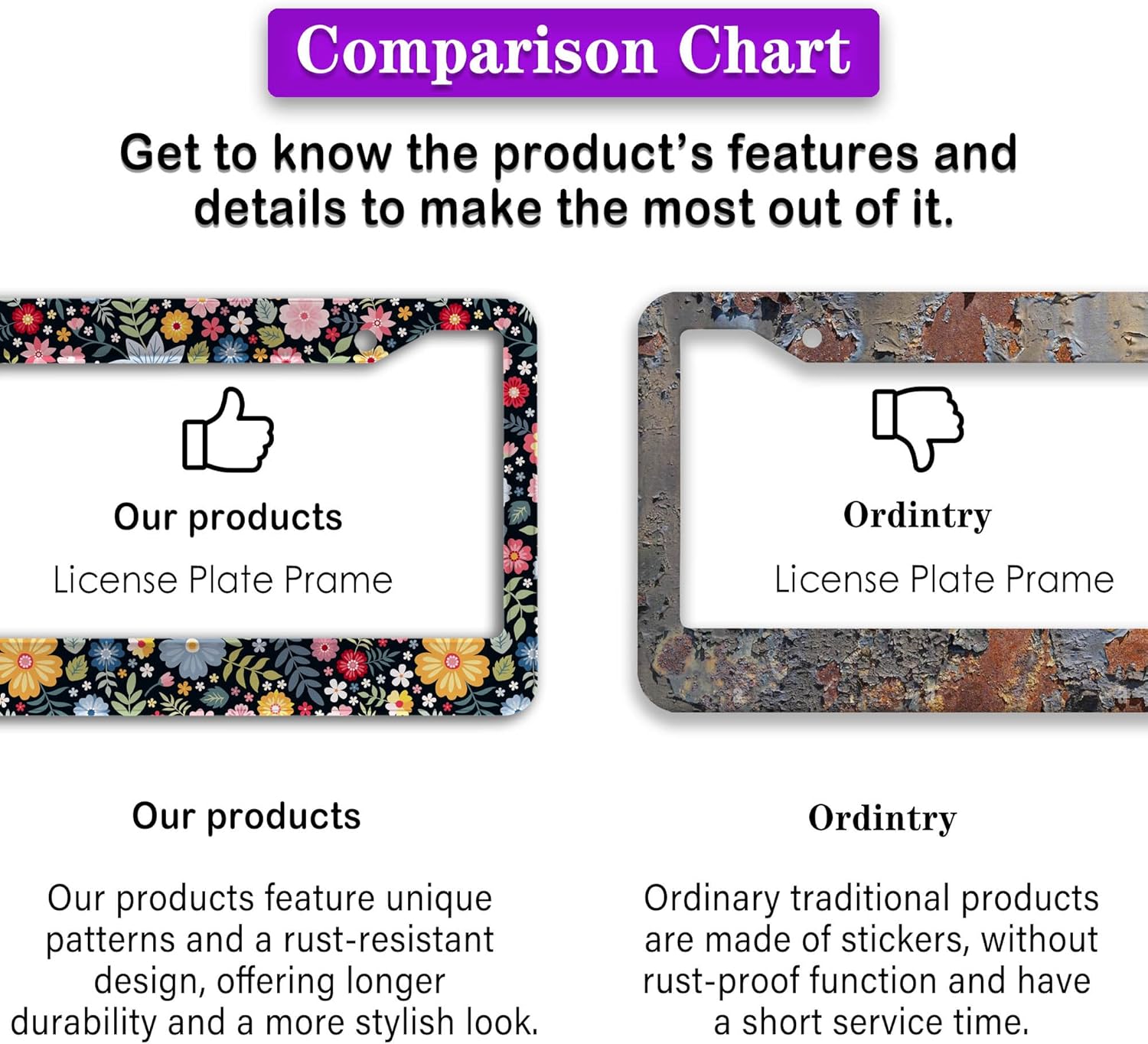 - ALUMINUM FRAME: This License Plate Frame is crafted from high-quality aluminum that is resistant to corrosion, rust, and harsh weather conditions. Its rugged reliability design ensures a long lifespan, making it capable of withstanding car washes and extreme weather, providing you with a reliable and stylish solution for your vehicle.