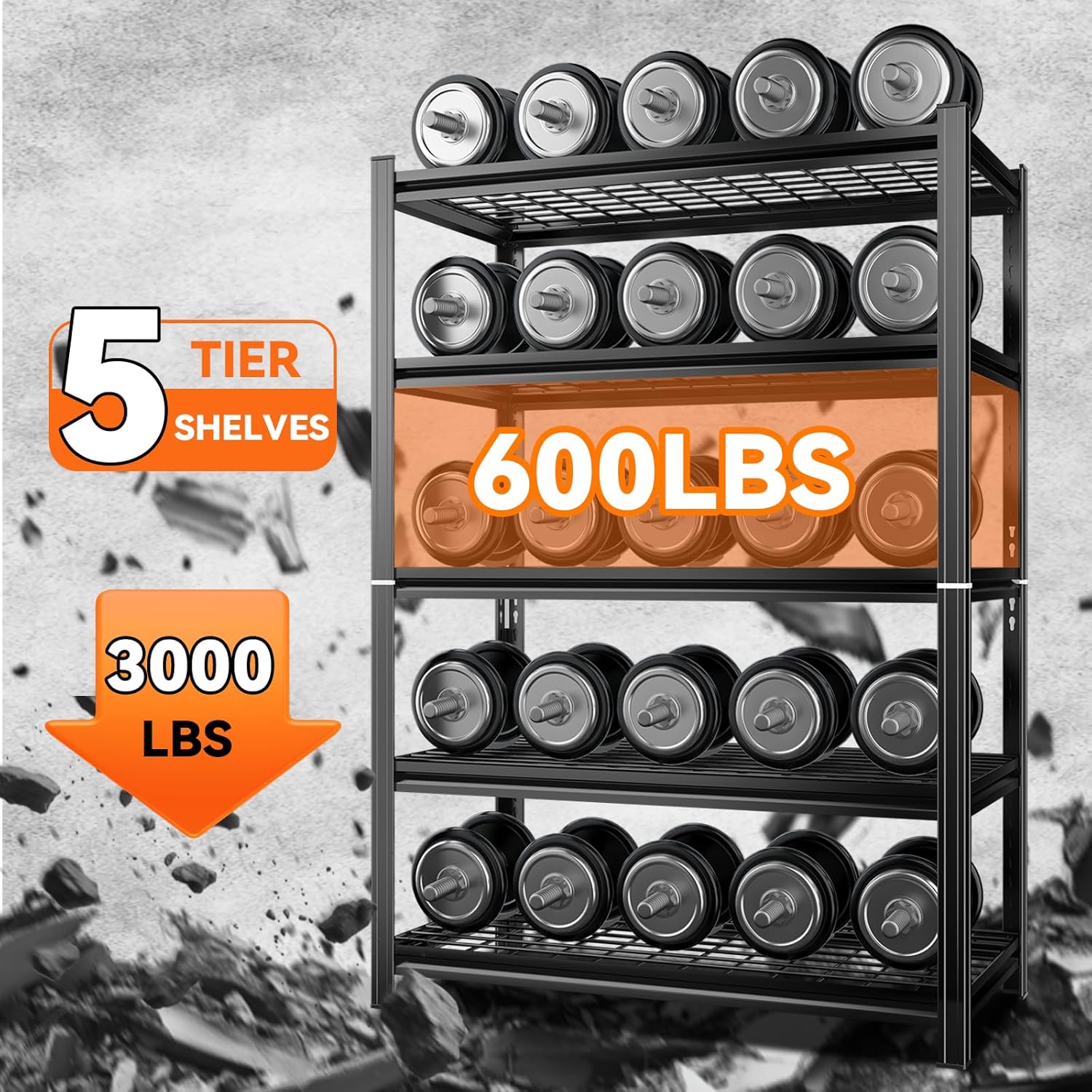 72''H Garage Shelving 3000LBS Capacity Heavy Duty Garage Storage Shelves, Adjustable 5 Tier Metal Industrial Wire Shelf for Kitchen, Utility Room, Warehouse and Basement, Black (36''Wx16''Dx72''H)