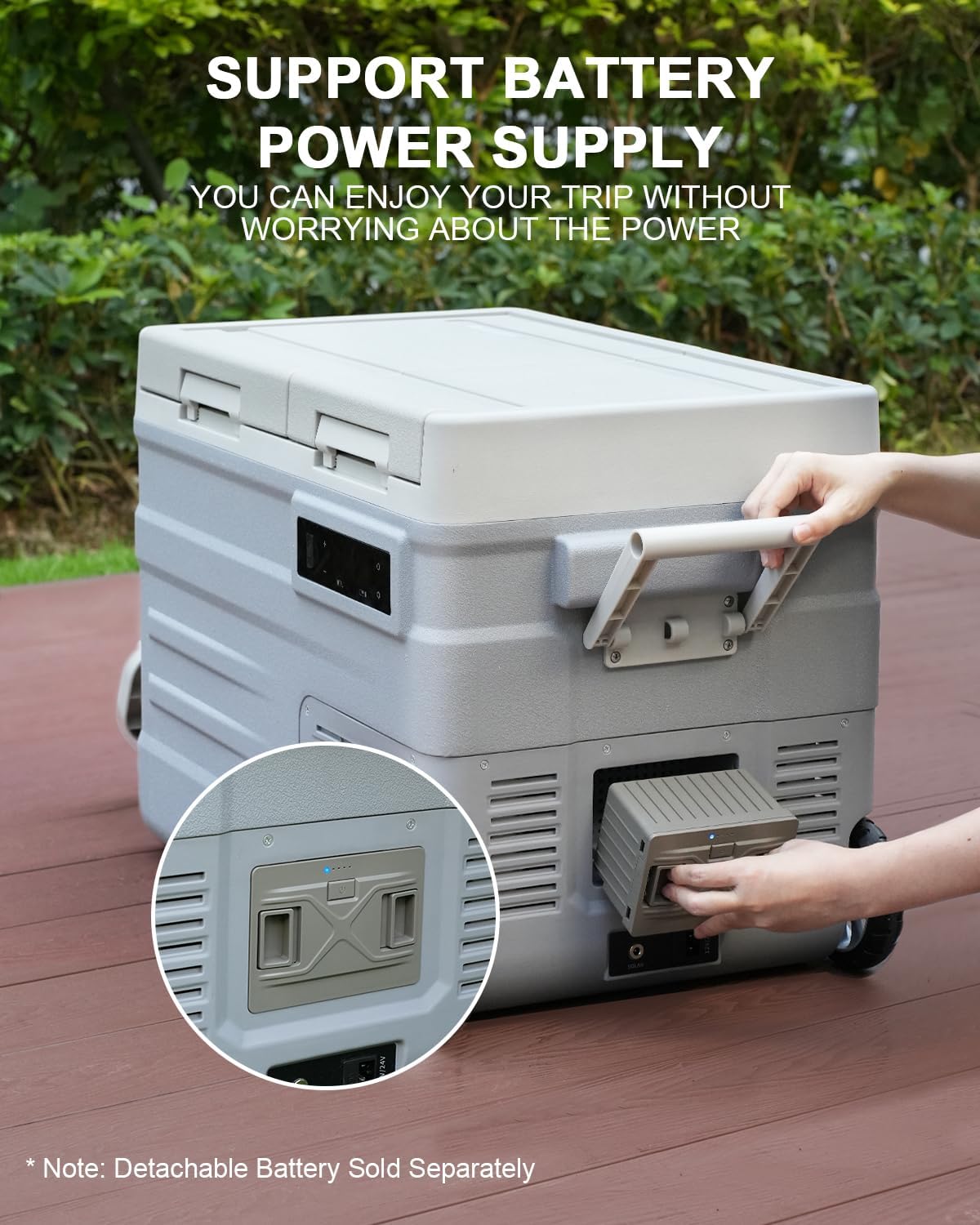 - [4 Power Supply Methods]: ELECAENTA portable refrigerator not only supports 12/24V DC, 110-240V AC and solar panel power supply, but also supports battery power supply (Detachable Battery Sold Separately). You can enjoy your trip without worrying about your car refrigerator running out of power. Fit anywhere like car /jeep /truck /dorm /cottage /garage /RV /boat /outdoor and home use
