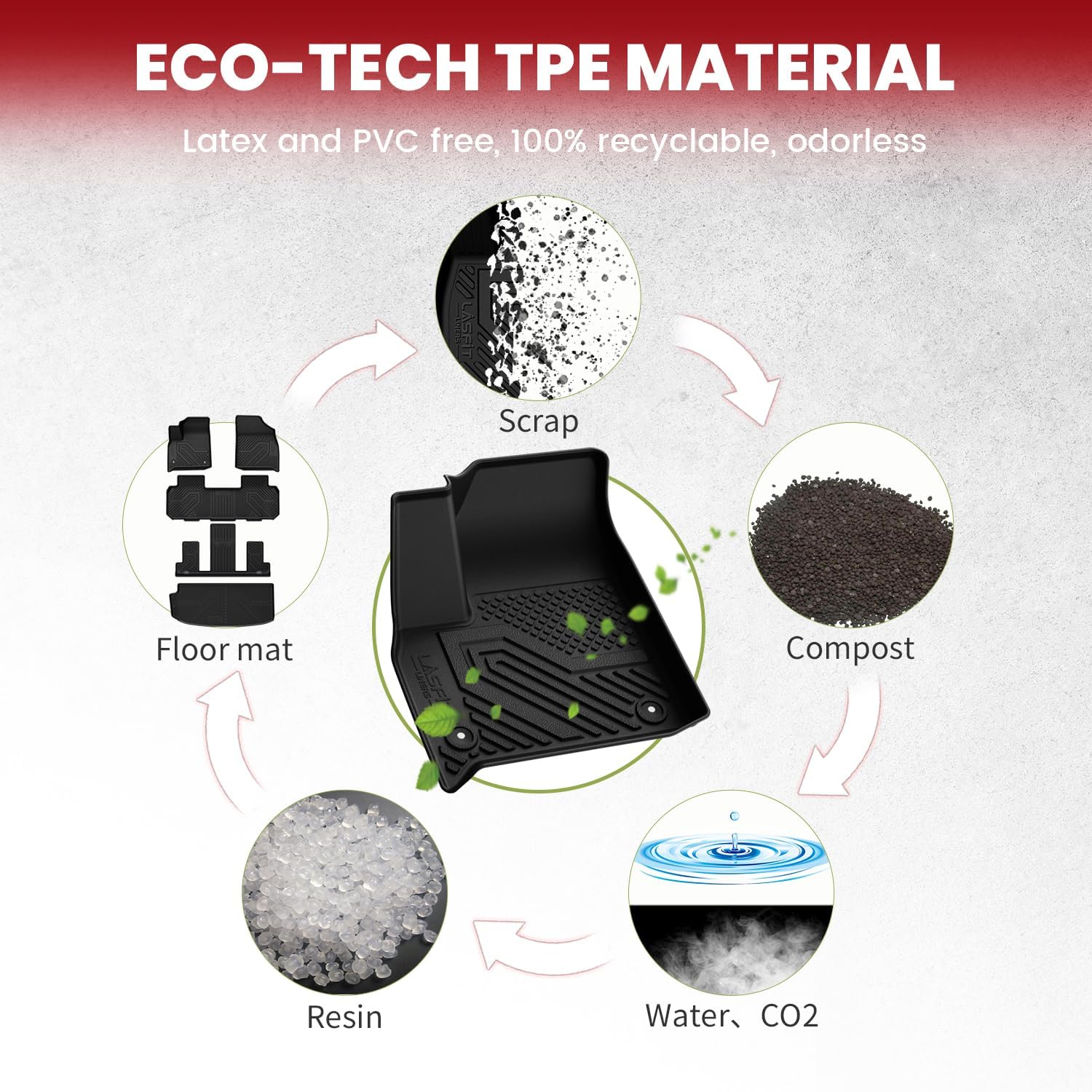 - 【Durable & Safe Material】LASFIT all weather floor mats for Traverse use elastic TPE (Thermoplastic Elastomer), no foul odor is produced even at high temperatures, soft touch and exquisite finish. The LASFIT floor mats for cars are skid-proof and recyclable.