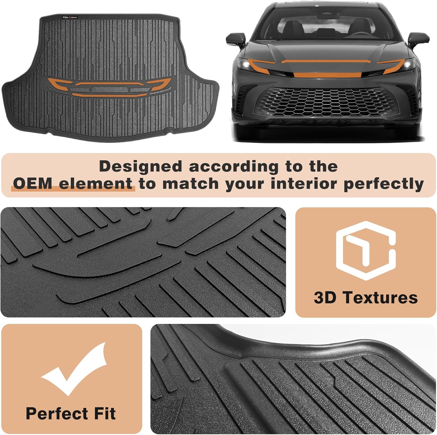 - Perfect Fitment: Custom-fit design based on 3D laser scan data to ensure a perfect flush contour and full coverage for your 2025 Toyota Camry perfectly. [Package includes 1*Floor Mats Set, 1*Trunk Mat]