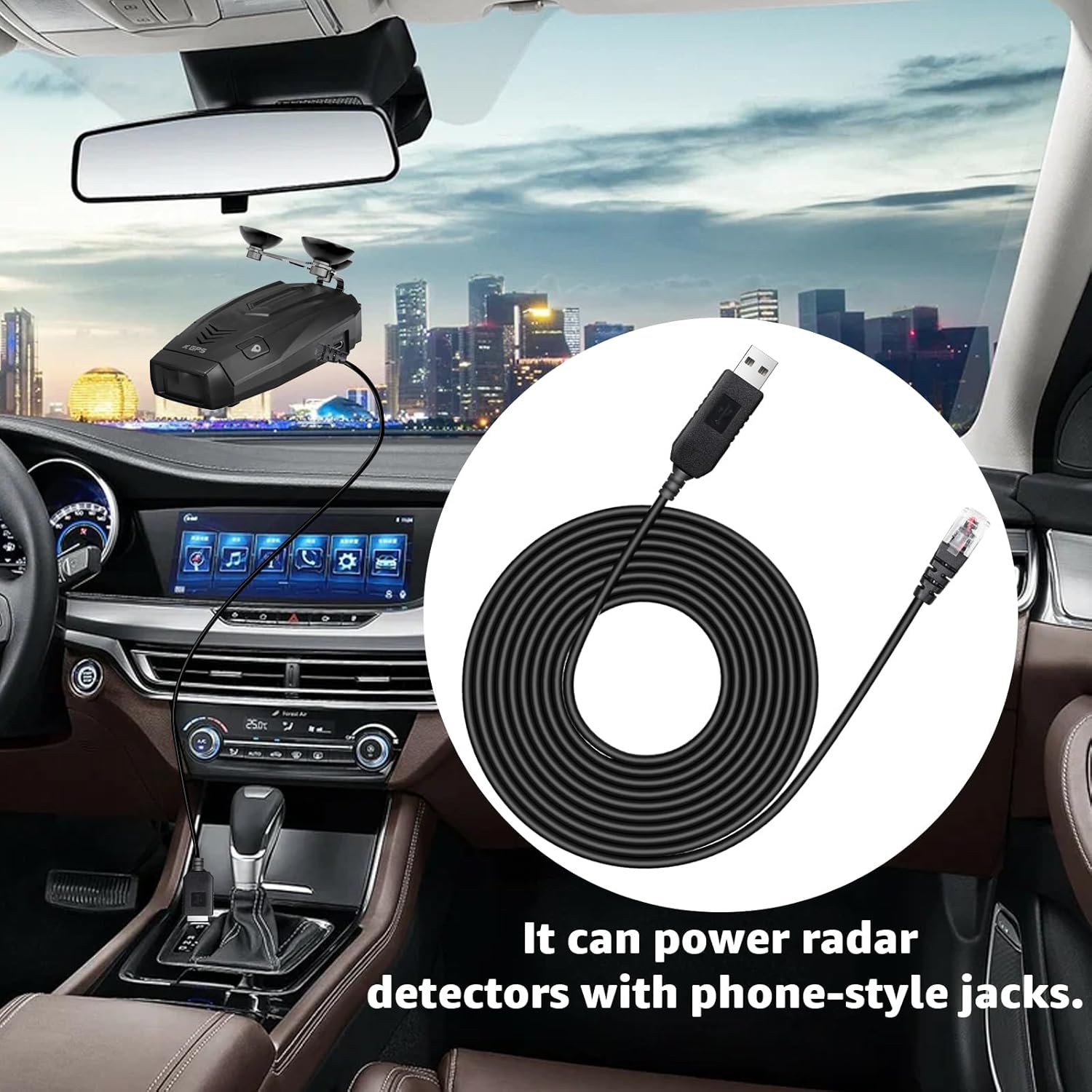 USB to RJ11 Radar Detector Power Cable,DC5V-12V Power Cable Replacement for Escort, Uniden, Radenso XP, Beltronics & Whistler Radar Detectors (13FT Length)