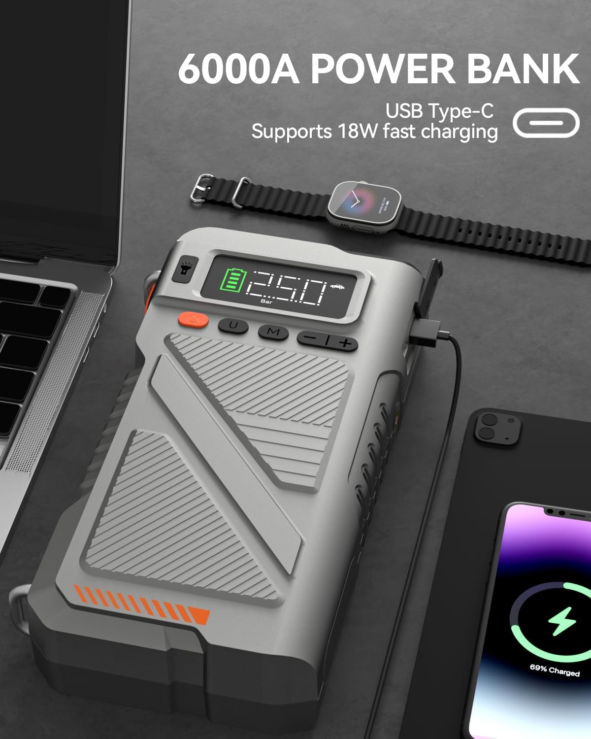 - 【Great for Gifts and Outdoor Activities】A thoughtful gift for car owners and outdoor lovers, this 6000A jump starter and power bank is a practical choice for those who value convenience and preparedness in their daily lives and adventures