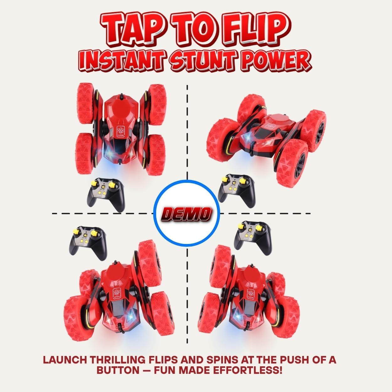 All-Round Drive Stunt RC Car - 360ยฐ Spins, High-Speed Off-Road with LED Headlights, 2 Rechargeable Batteries, AAA Remote Batteries, All-Terrain for Kids 6+ & Adults (Red)