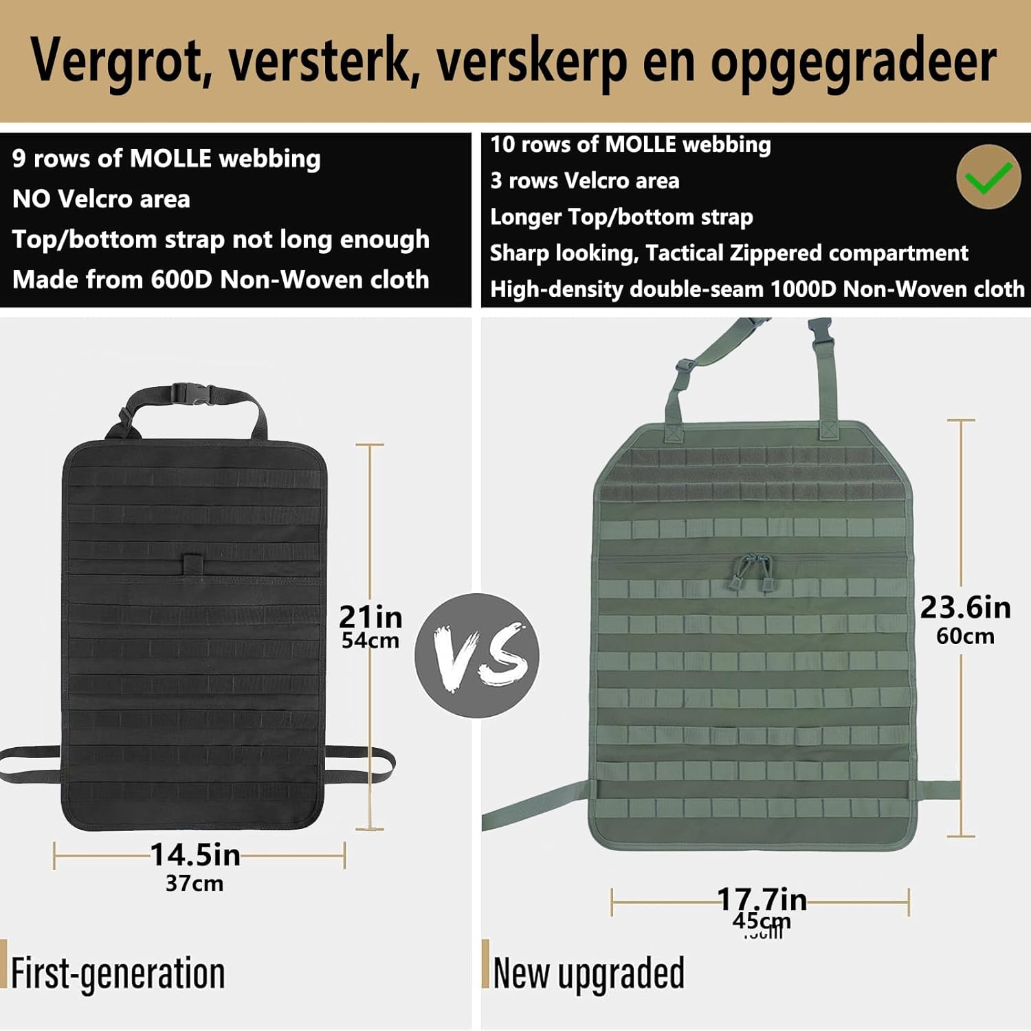 - 🚗 Multifunctional Storage - Design with 5 Molle bags on the back to help you store tactical gear & personal items and save space. Difference sizes of Molle bags help you classify your items so easily.you can set the Tactical Seat Back Organizer according to your own habits and need.