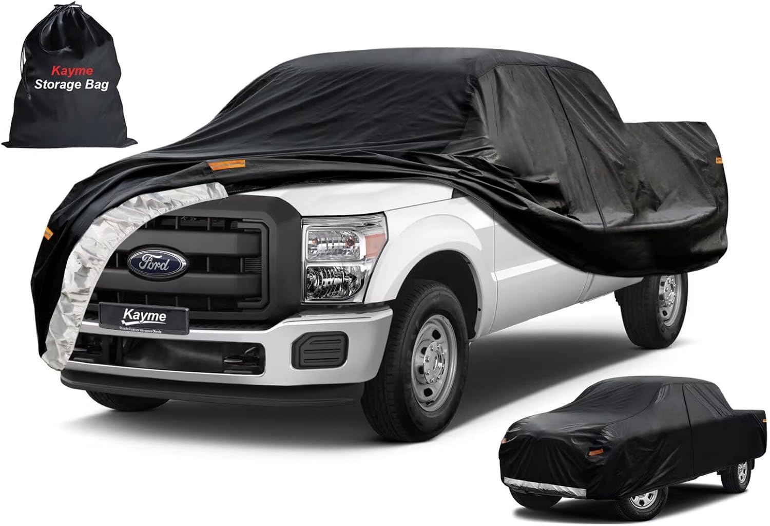 Kayme Truck Cover Custom Fit Ford F-250(1999-2025) Super Cab Long Bed. Full Exterior Heavy Duty Outdoor Pickup Truck Car Cover Waterproof All Weather.Car Tarp for Wind Sun Dust Protection.Black