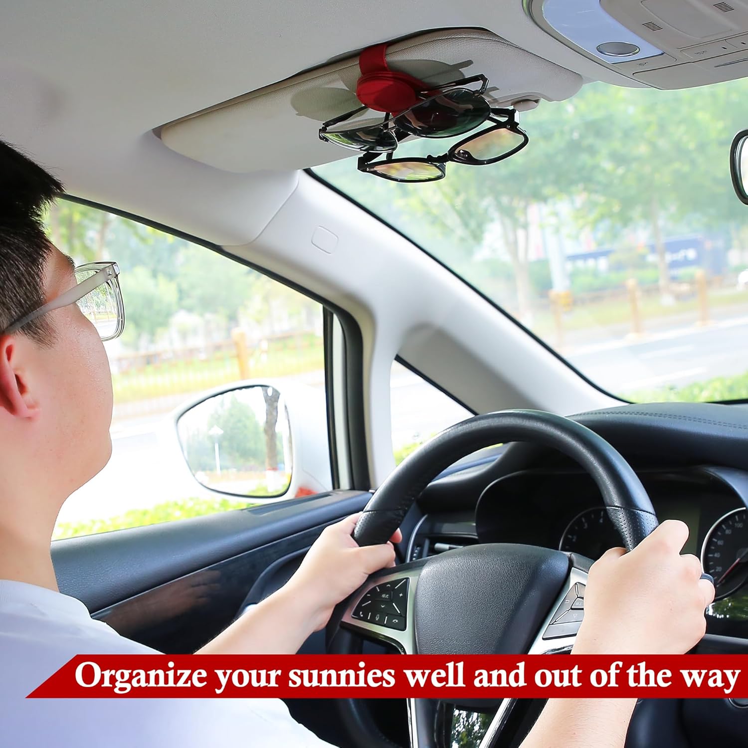 - Double Storage: This design can store 2 pairs of eyeglasses at once, fitting most types of eyewear, including sunglasses, prescription glasses, and reading glasses; enough space between clips to prevent from scratching each other for extra safety
