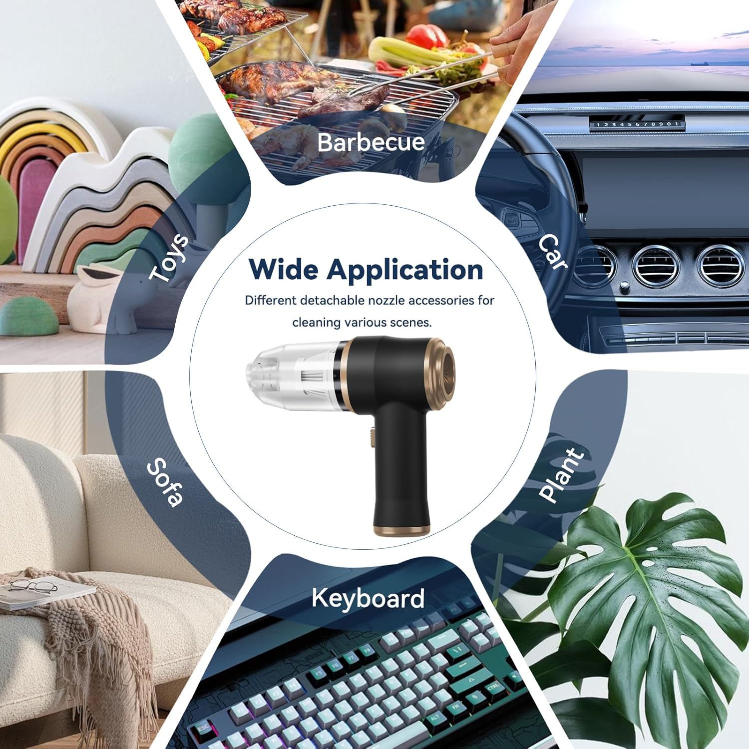 Mini Car Vacuum Portable Cordless Handheld Vacuum Cleaner and Air Duster 2 in 1 with Multi-Nozzles for Car, Computer, Sofa, Office, Pet, Home