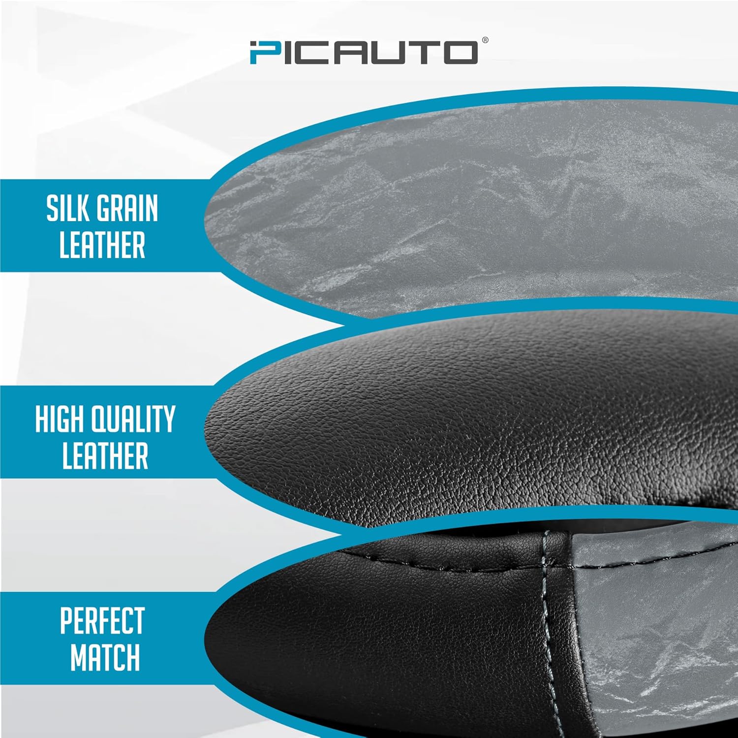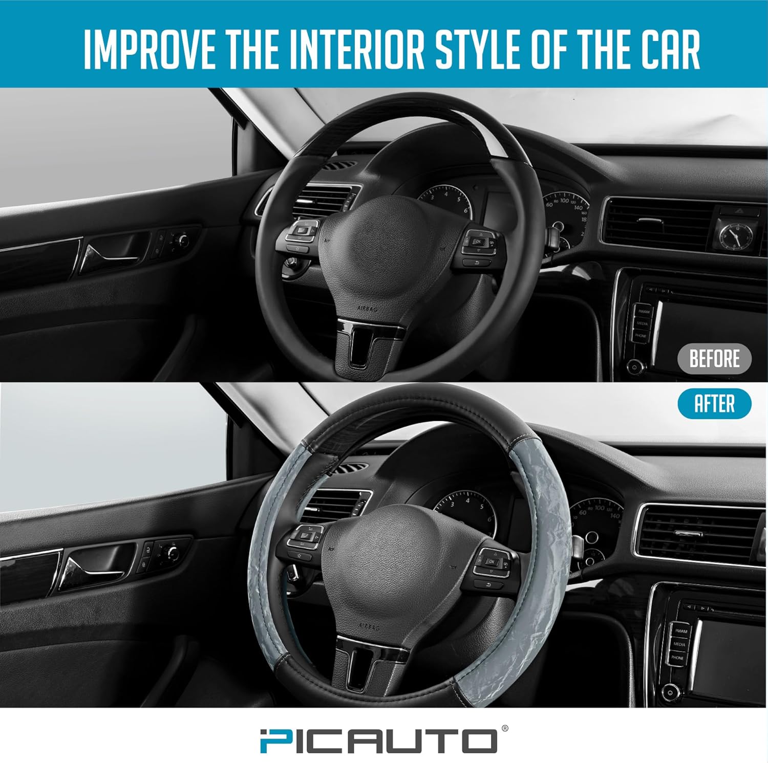 PIC AUTO Steering Wheel Cover, Silk Grain Leather Car Steering Wheel Protector, Comfortable Grip, Universal 14.5-15.5 Inch Anti-Slip Steering Wheels Accessories for Men & Women (Gray)