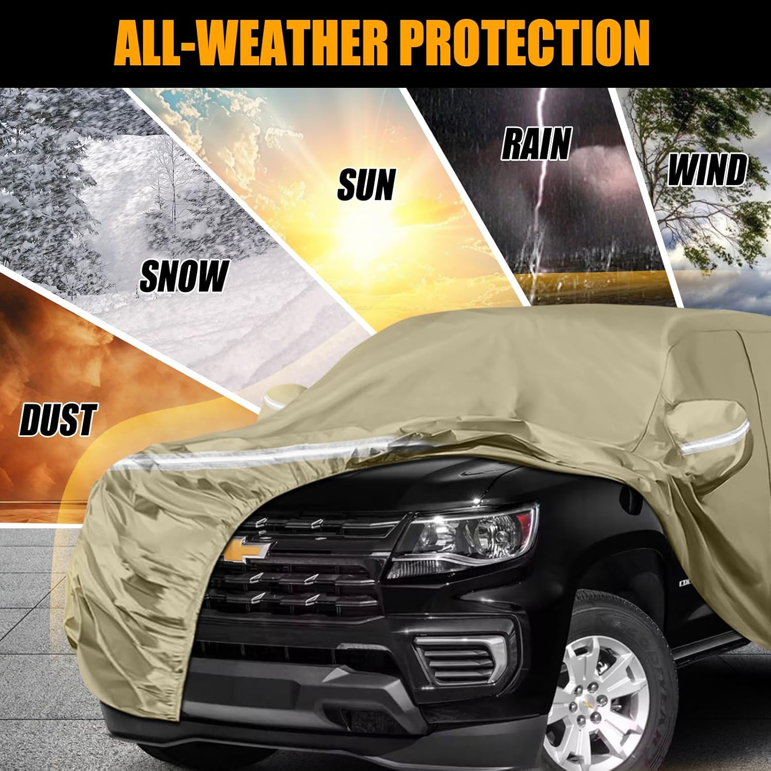 - All Weather Car Cover: Sportuli Car Covers can handle it all no matter hot sun or cold weather. The strengthful material keeps your car safe from sun, snow, frost, rain, sand, dust, leaves, branches and birds dropping