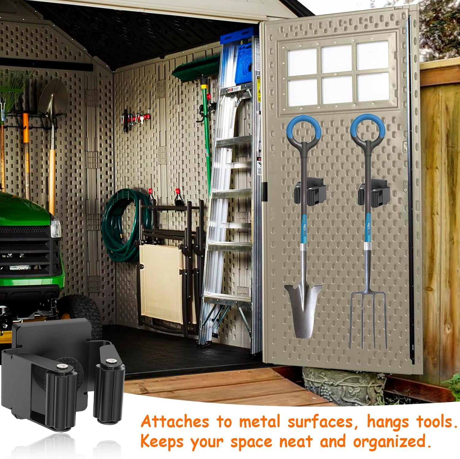 - Versatile Mop Hanger: This magnetic broom and mop holder works on any flat metal surface. It can also be used as a garage organizer, a cabinet organizer for laundry room decor and accessories, and a garden tool storage solution