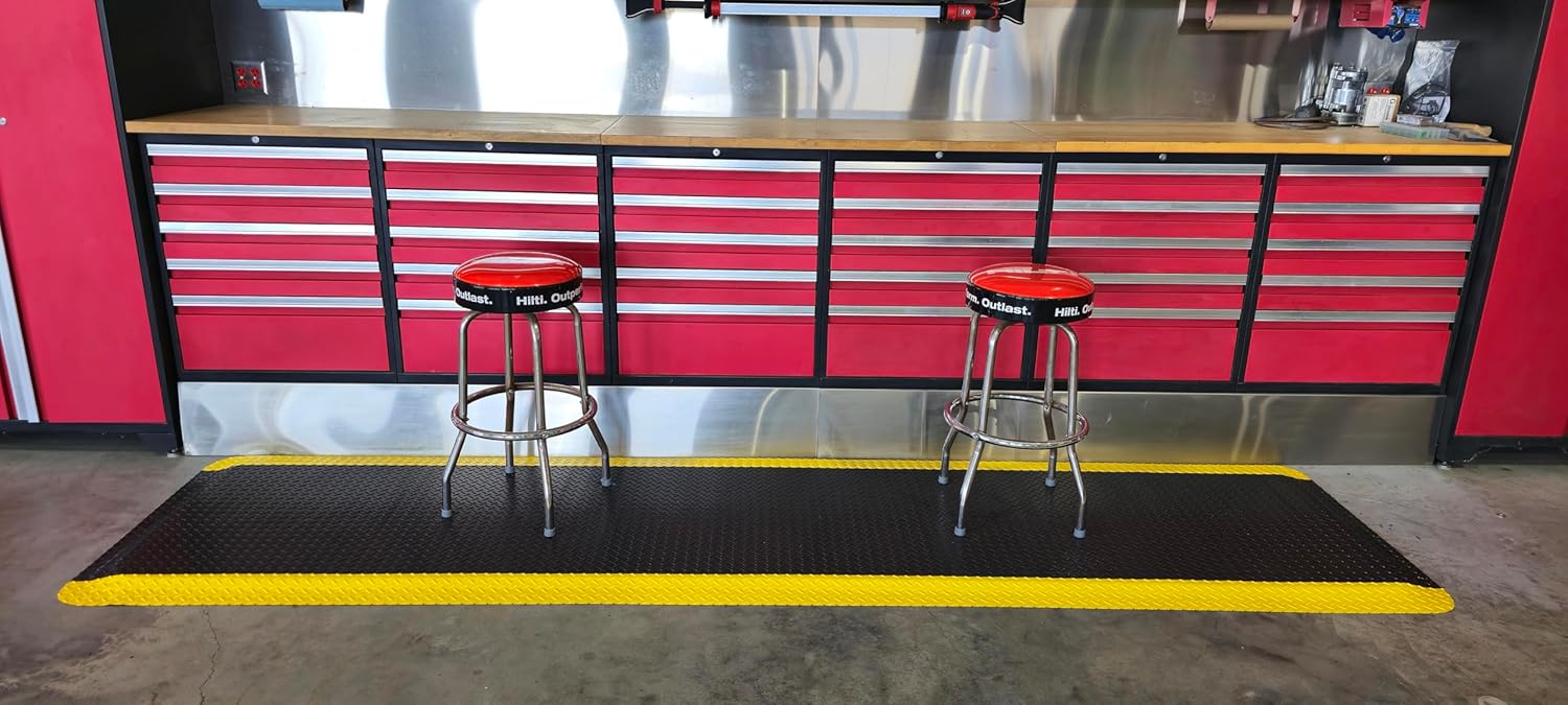 Rhino Mats, American Classic Diamond Anti-Fatigue Mats, Industrial Ergonomic Comfort Standing Mat for Work, Home, Garage, Office, Kitchen or Anywhere (Black/Yellow 9/16" Thick, 2 FT. x 9 FT.)