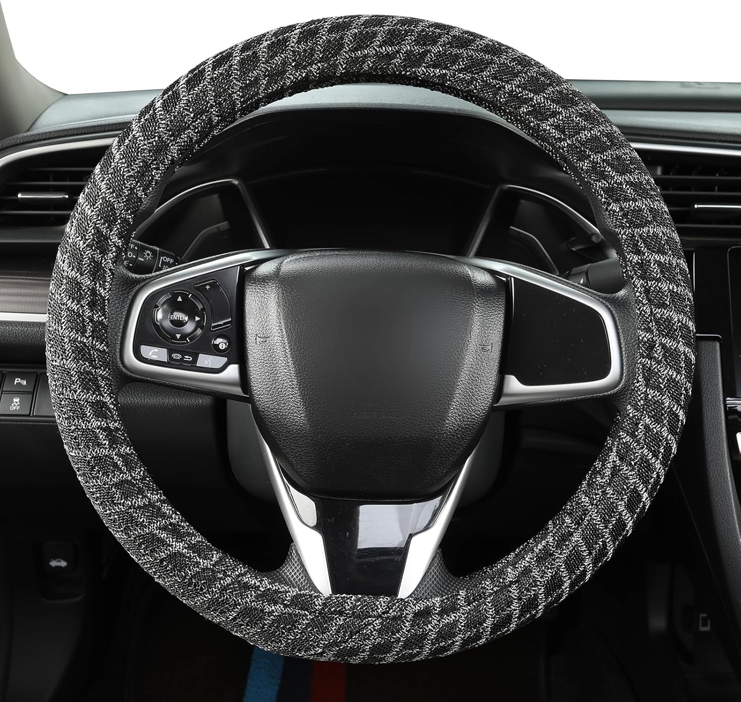 - *Perfect Universal Size* Suitable for 95% of cars. Flexibly, easy to install. Tailored for Medium-size Round Shape steering wheels with a diameter of 14.5-15 inches (37-38 cm), our cover is engineered for a snug and secure fit. If you are not sure whether your steering wheel is suitable, please contact us, we provide 24 hours service.