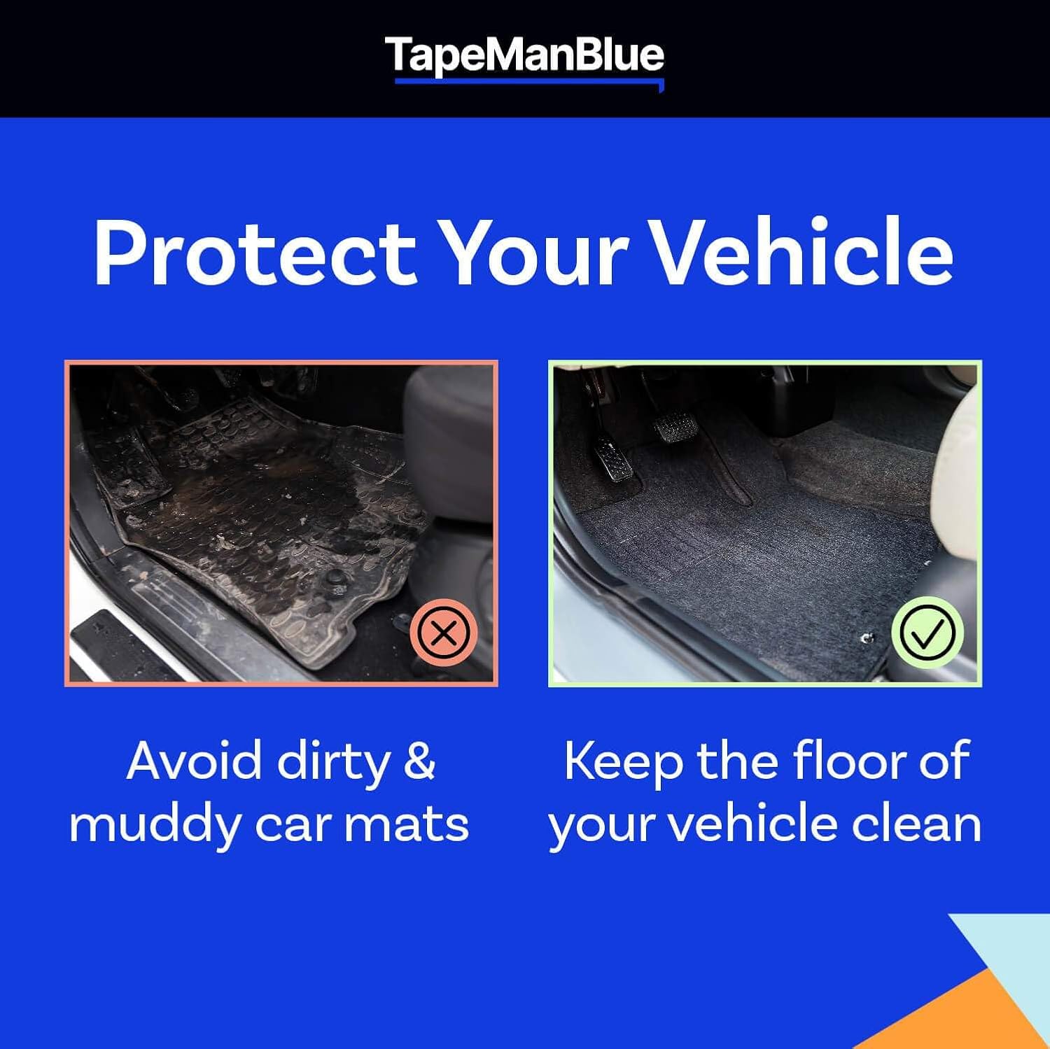 - PREMIUM CAR CARPET PROTECTOR: Our 24 inch roll of car carpet protector is the solution to protect against grime and dirt in your car's carpets. The car carpet cover is 4 mils thick and is perforated every 21 inches to help with easy tearing. If you want to keep your car capets like new, trust in TapeManBlue’s car floor mat protector to achieve long-lasting results.