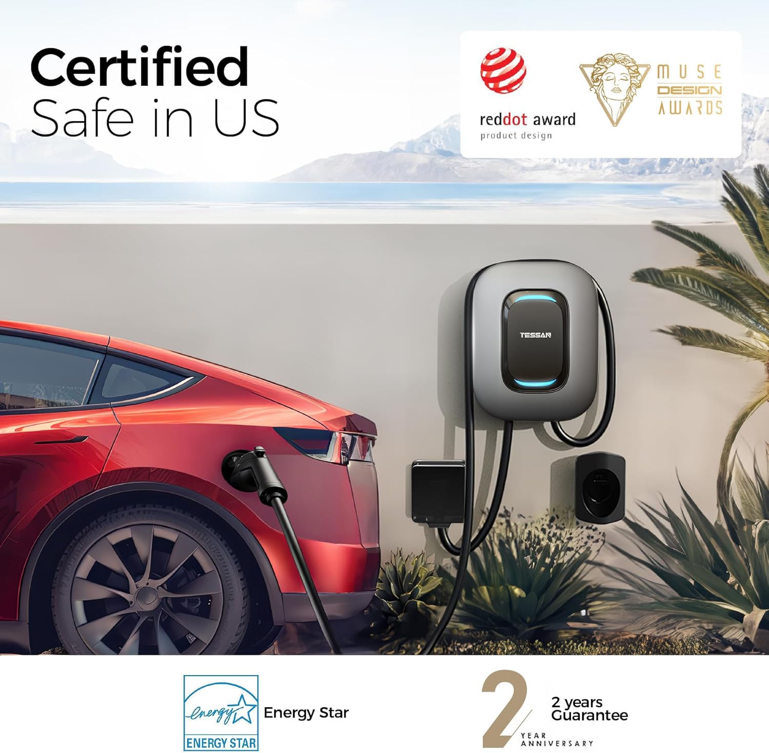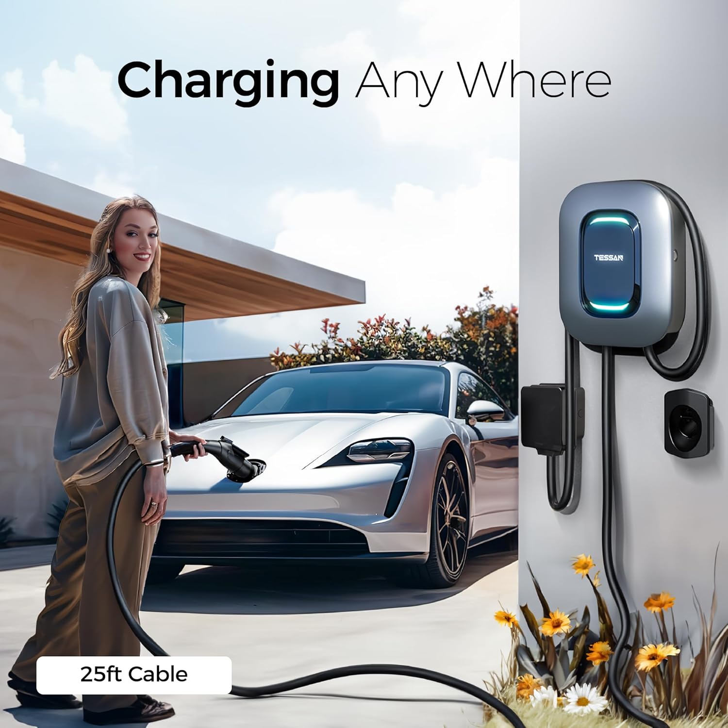 - Conventient Charging: TESSAN provides reliable, safe and efficient charging solutions for electric vehicle user. You can get the 25ft cable with EV charger for your home or garages and charge as you want.