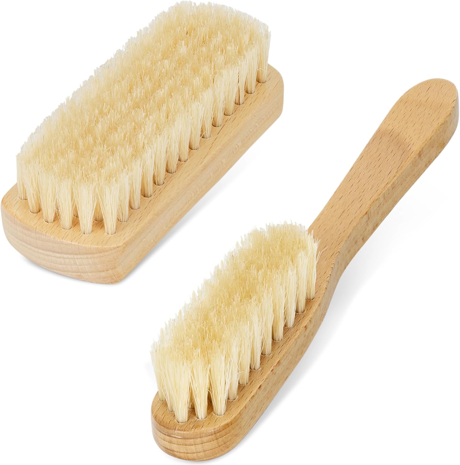 - Detailing Brush: The set includes a big brush (4x1.73x1.26 inches) and a small long handle detailing brush (7x1.18 inches). The bristles are densely packed into wooden handles, providing years of rugged cleaning ability. The leather cleaning brush is tough enough to scrub away embedded dirt and tough stains from sealed leather, gentle enough to use on sensitive leather goods.