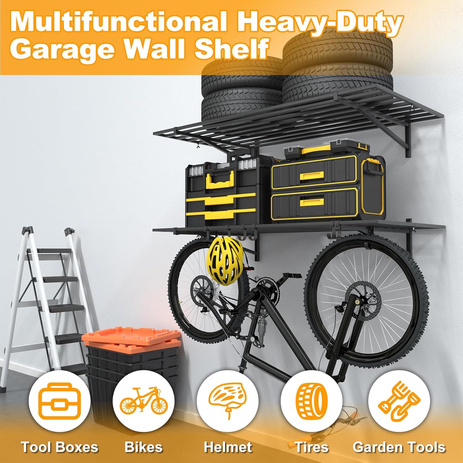 - 【 Wide range of application scenarios】 Garage shelving wall mounted are perfect for storing tools, equipment, boxes and other types of items in a variety of scenarios such as garages, stores, laundry rooms, kitchens, and even industrial use. Meet your storage requirements in different places.