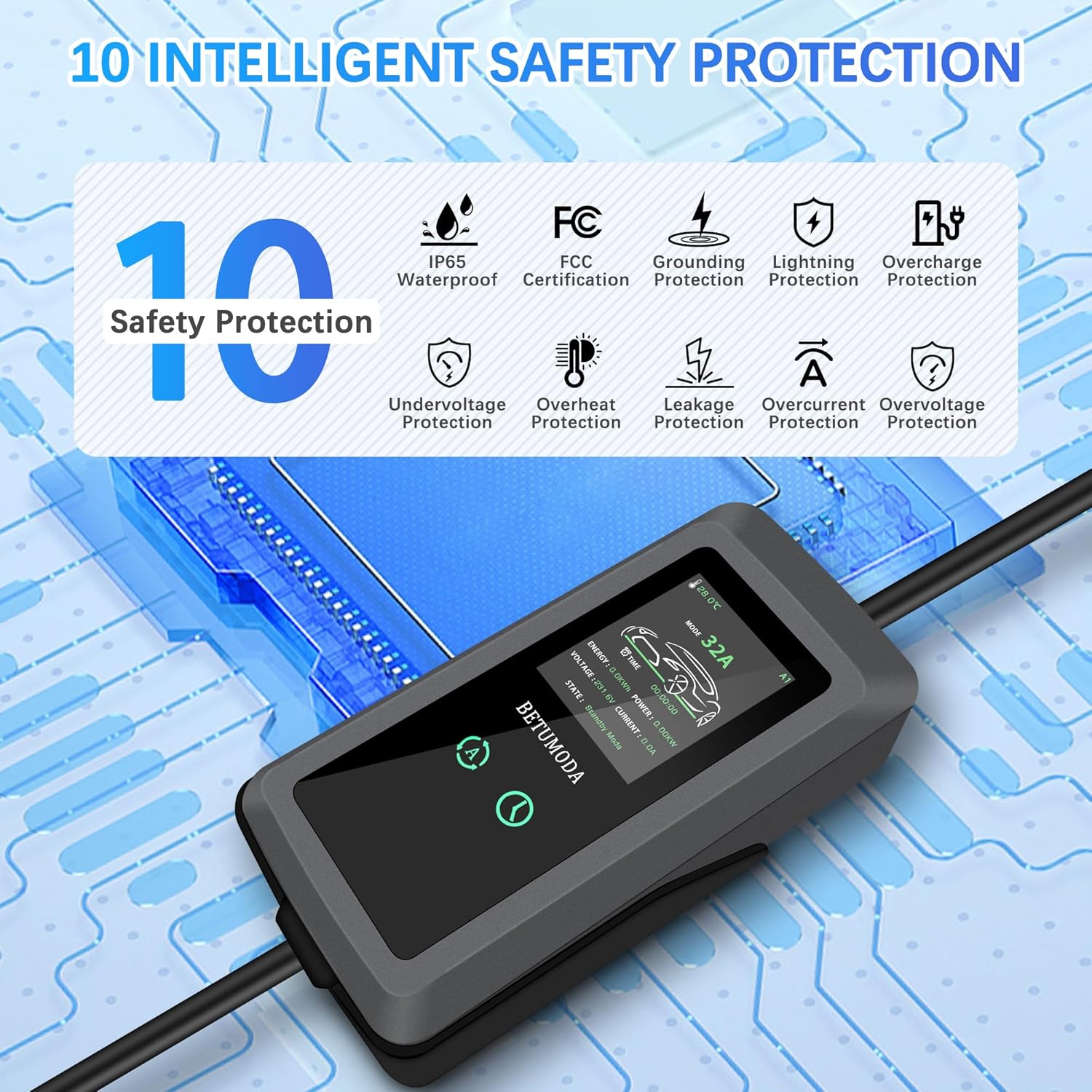 - Extra Long Charging Cable:οΌWith a 25-foot-long cable, this portable charger provides ample room for maneuverability and convenient charging at home or any available charging station. The extended length ensures you can easily reach your vehicle, even in tight parking spaces.
