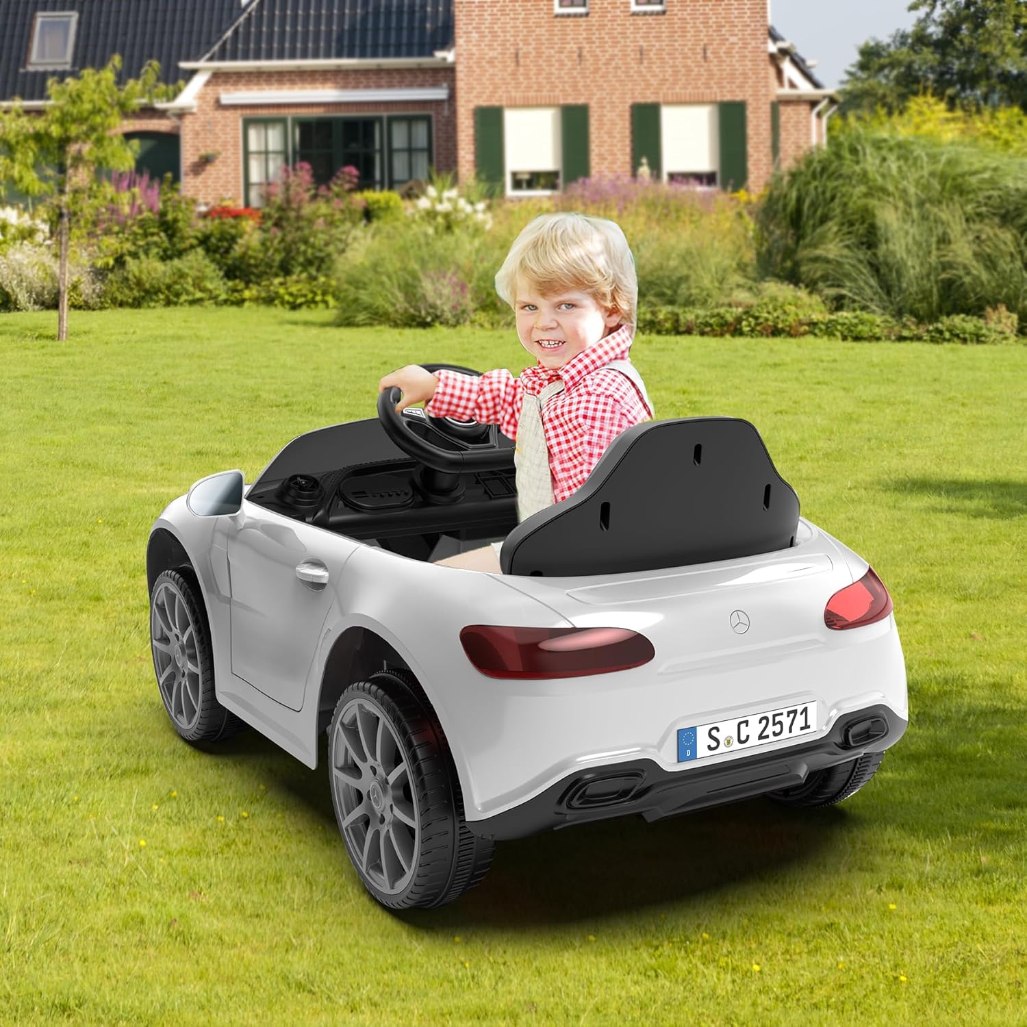 12V Kids Ride On Car with 2.4G Remote Control,Battery Powered Electric Car Ride On Vehicle Double Doors, 5 Point Safety Belt,LED Light (SC-White)