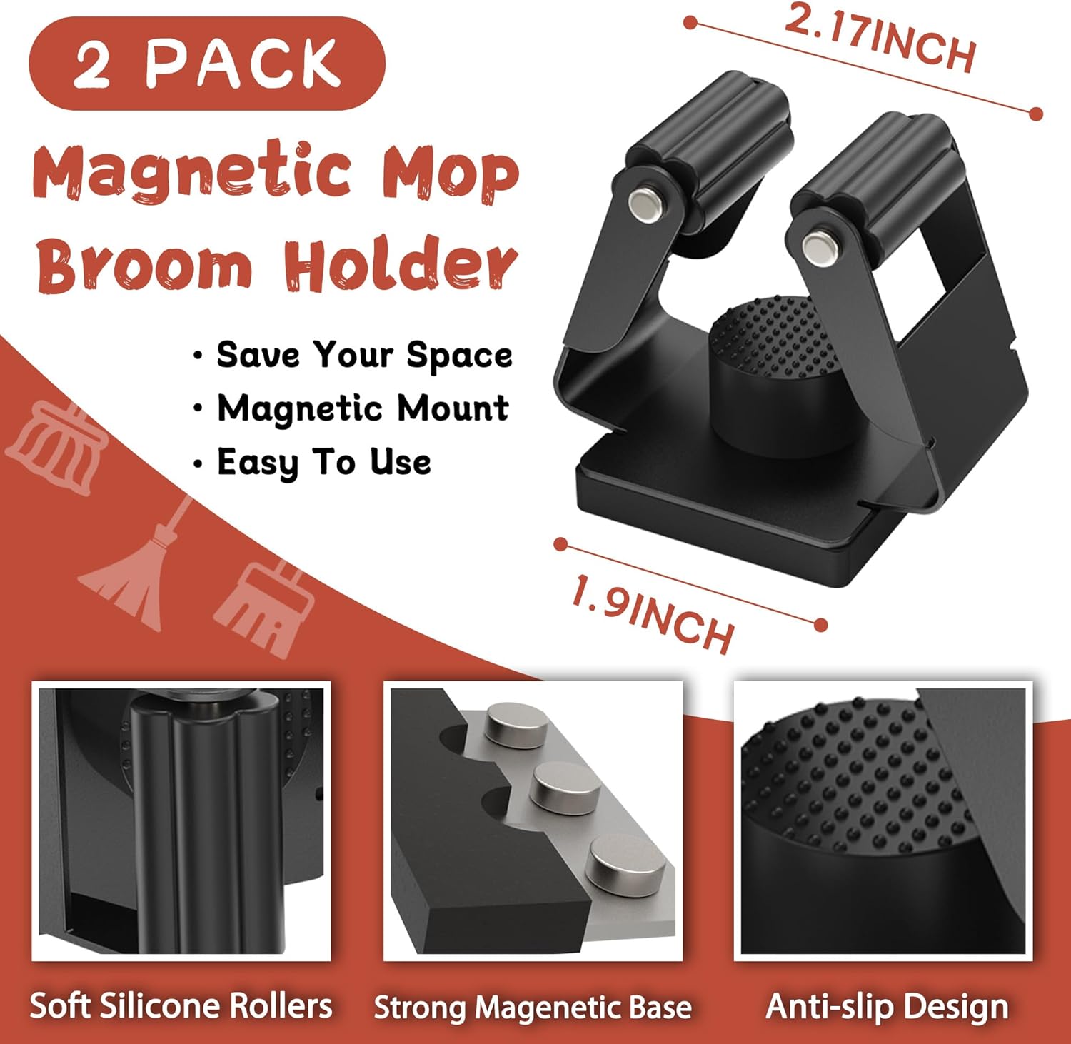 - [Easy to Use]: Magnetic bases have anti-slip and anti-scratch advantages,magnetic mop broom holders are designed to make your life easier, hold dusters, dustpans, and other cleaning utensils, keeping everything within reach and well-organized