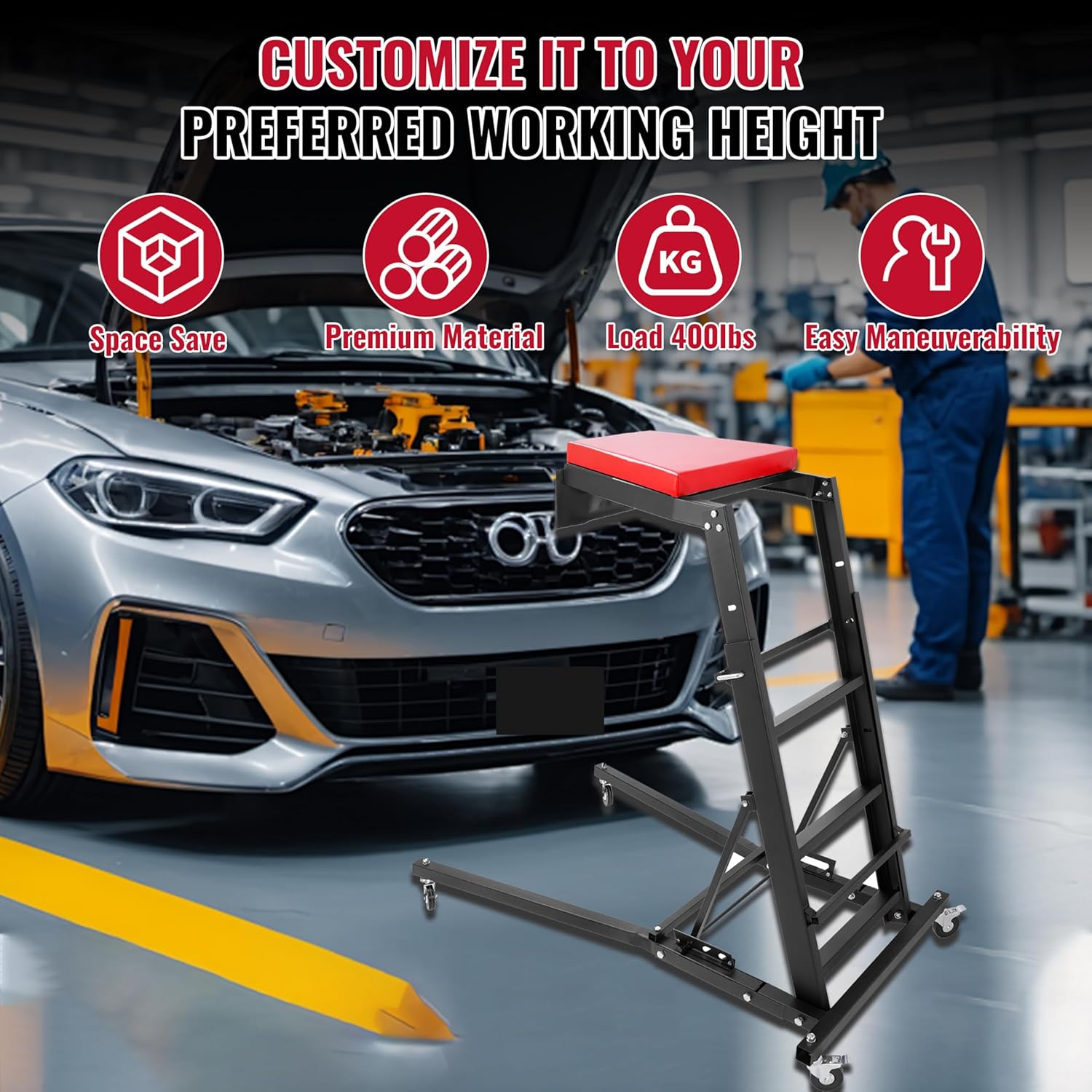 - Easy Maneuverability: Need to move around the shop? Our creeper comes with 4 smooth-rolling casters that glide effortlessly across the floor, making it easy to navigate around vehicles and other obstacles