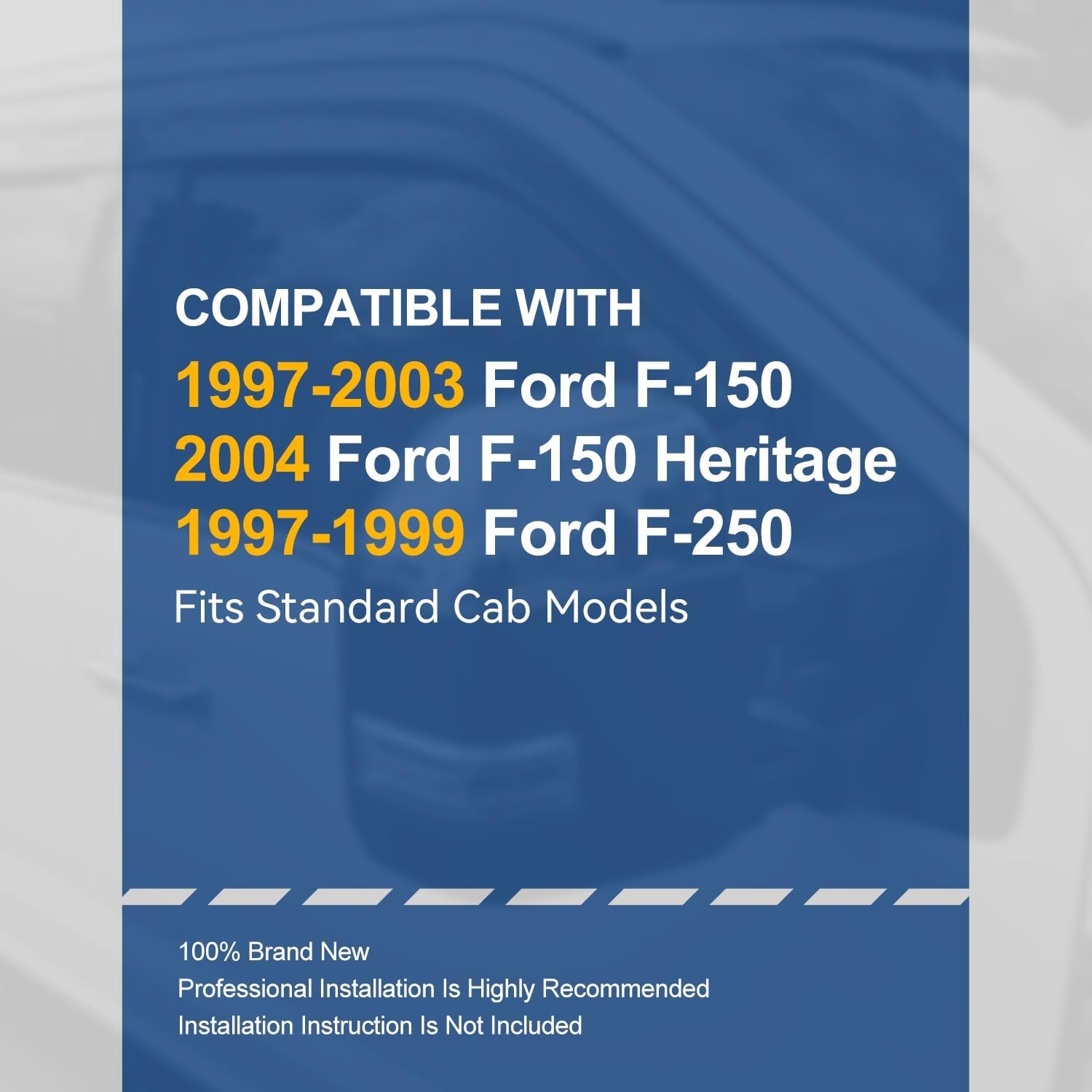 - Vehicle Compatibility - Set of 2 Window Visors Compatible With Ford F-150 1997-2003, Ford F-150 Heritage 2004, Ford F-250 1997-1999, Fits Standard Cab Models.