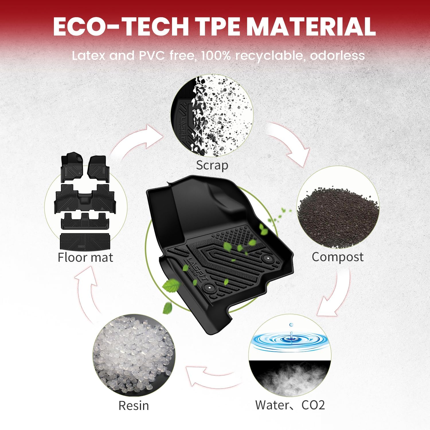 - â ăENVIRONMENT FRIENDLYăLASFIT Expedition car liners are made of TPE material. The TPE material not only has excellent hand feeling and high wear resistance but also does not deform or crack even in hot and cold weather, protecting your car floor for a long time. Give your family a safer and more comfortable environment in the car