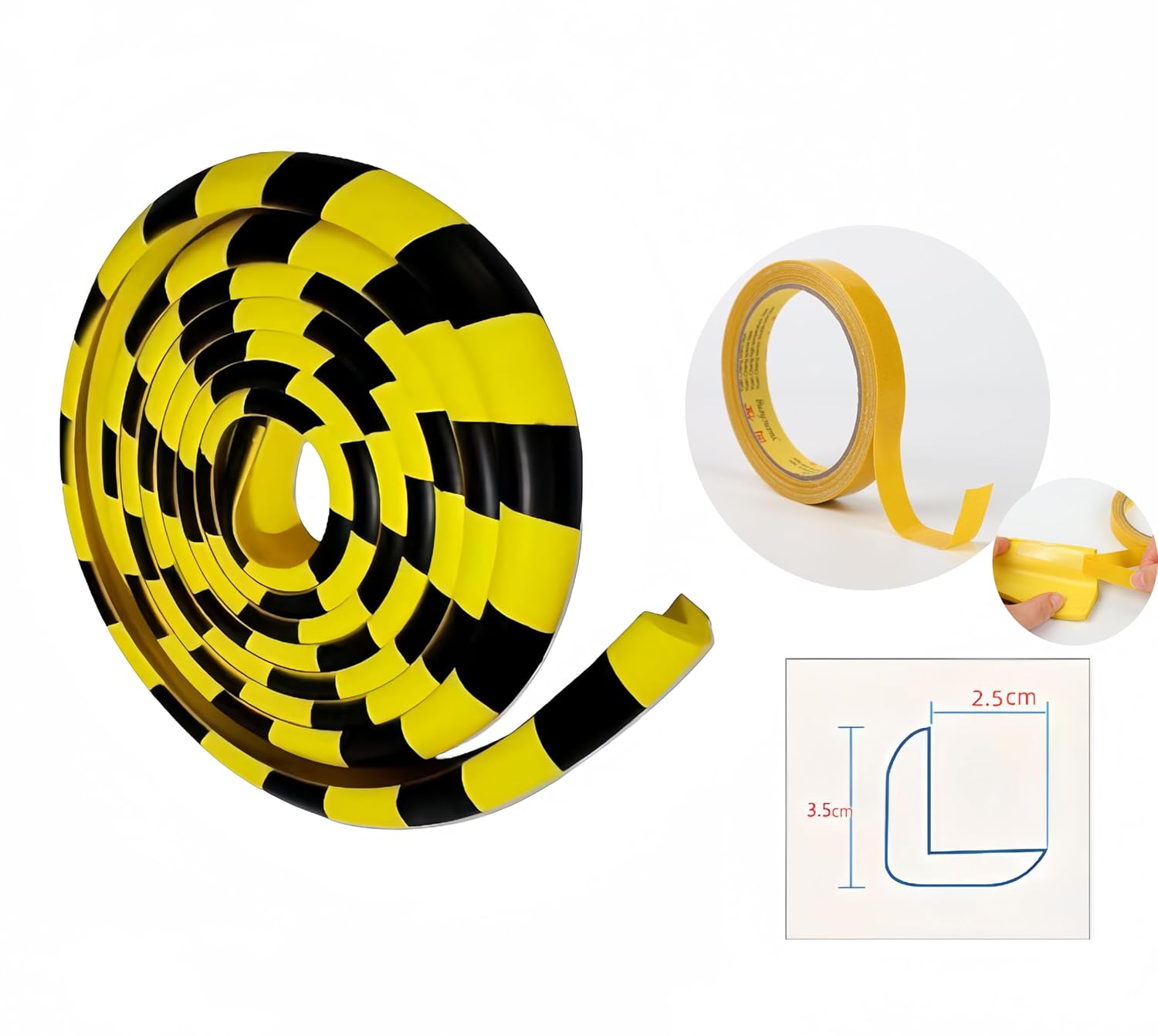Heavy-Duty Wall & Corner Guards – 5M Self-Adhesive NBR Rubber Protection with Yellow/Black Stripes for Parking Columns & Garage Safety