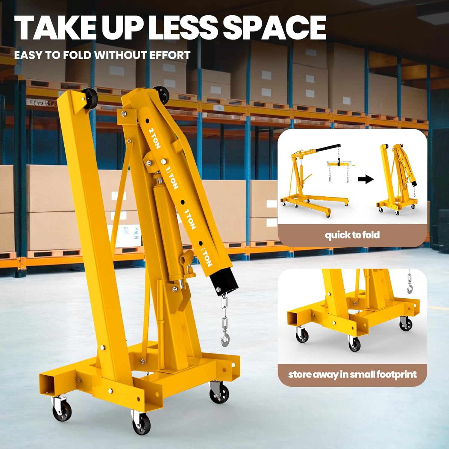- Easy operation: Cherry picker engine hoist upgraded 2.5 inches long handle, more labor-saving than normal short handle. Engine lift easy to operate to save labor and improve efficiency. Our hydraulic engine hoist moves effortlessly, ensuring a stress-free repair