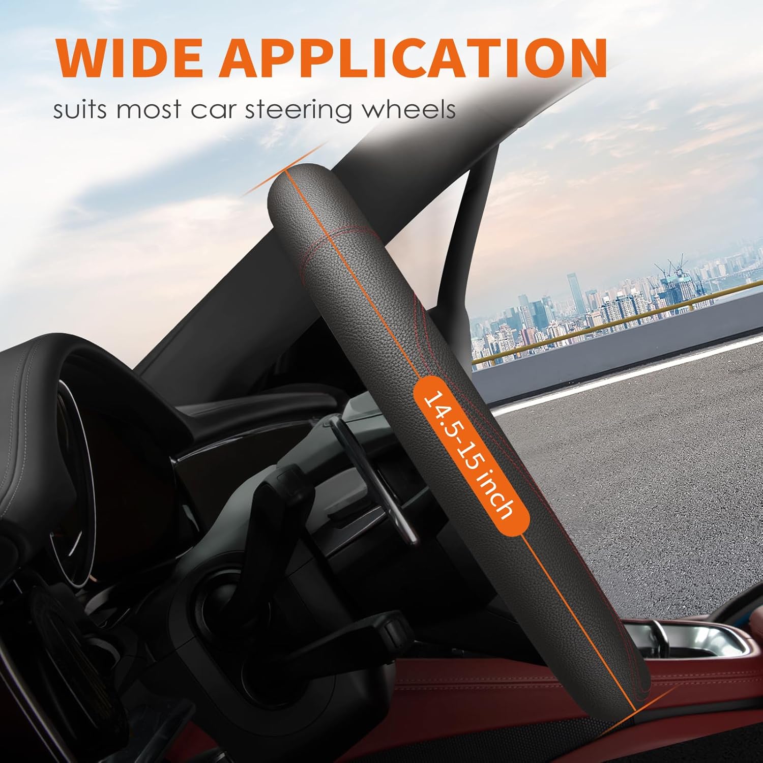 • WIDE APPLICATION: Featuring a universal size, HOTOR leather car steering wheel cover suits car steering wheel with a diameter of 14.5 to 15 inch(about 37 to 38cm). It's applicable to most cars like sedans, SUVs, and RVs.