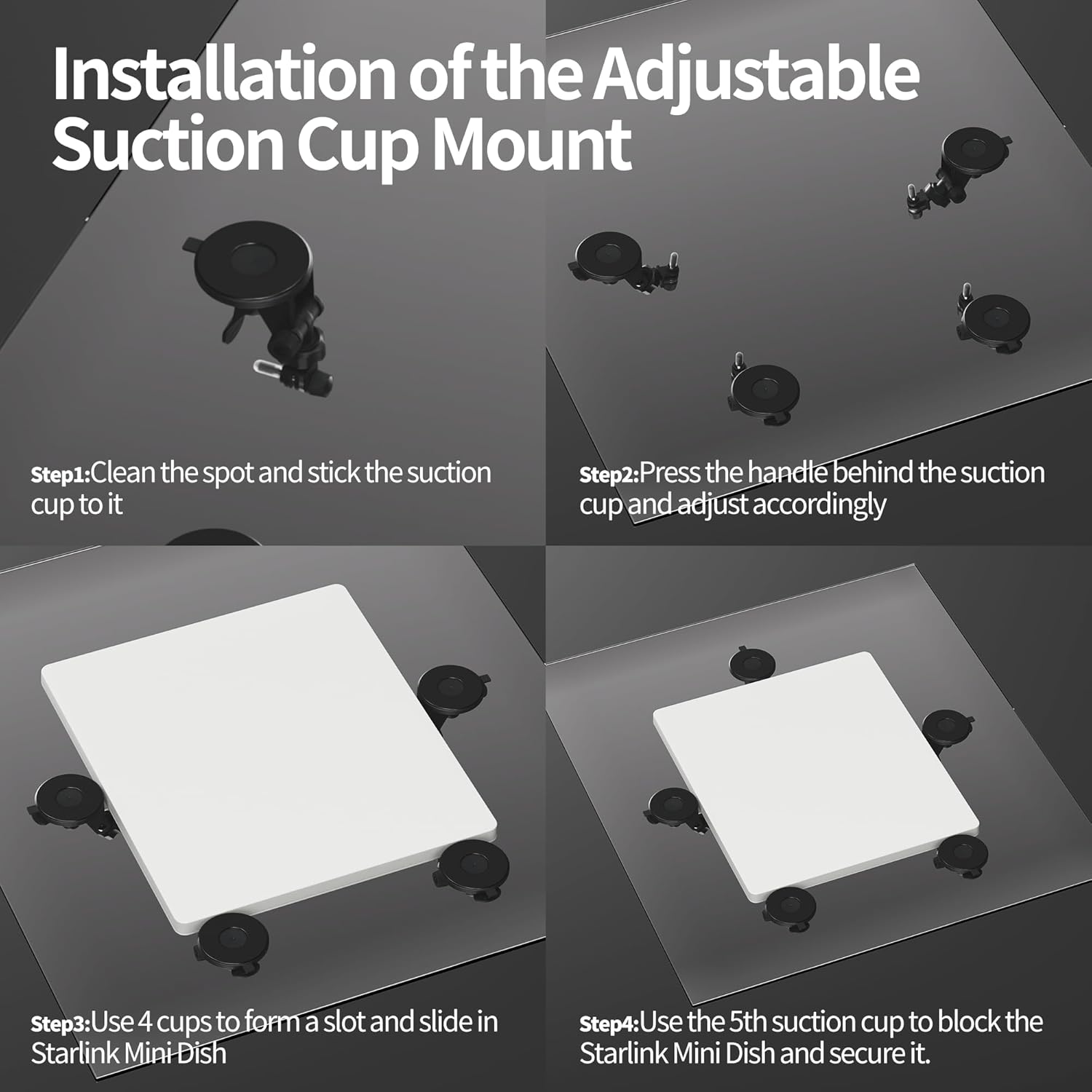 - High Quality Material & Easy Installation: Made from high-quality ABS material, the Starlink Mini Suction Cup Mount can function perfectly under 80° centigrade and hold your Starlink Mini dish antenna sturdy and tight.