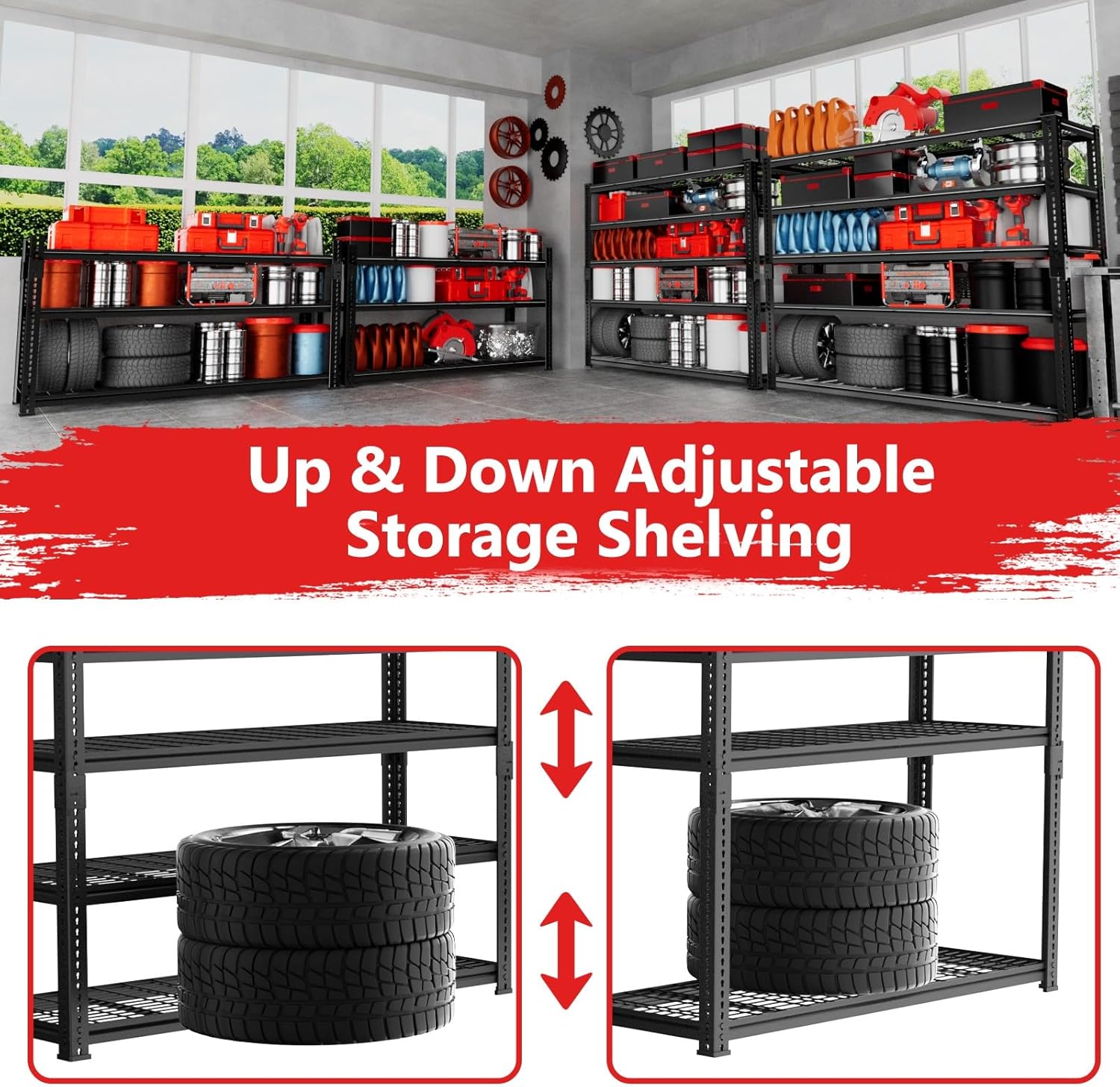 - 3300LBS Heavy Duty Capacity: MODCART's heavy-duty garage shelving is built with robust steel columns, supporting up to 660 lbs per shelf for a total of 3300 lbs. it offers reliable organization for your garage, kitchen, or laundry room