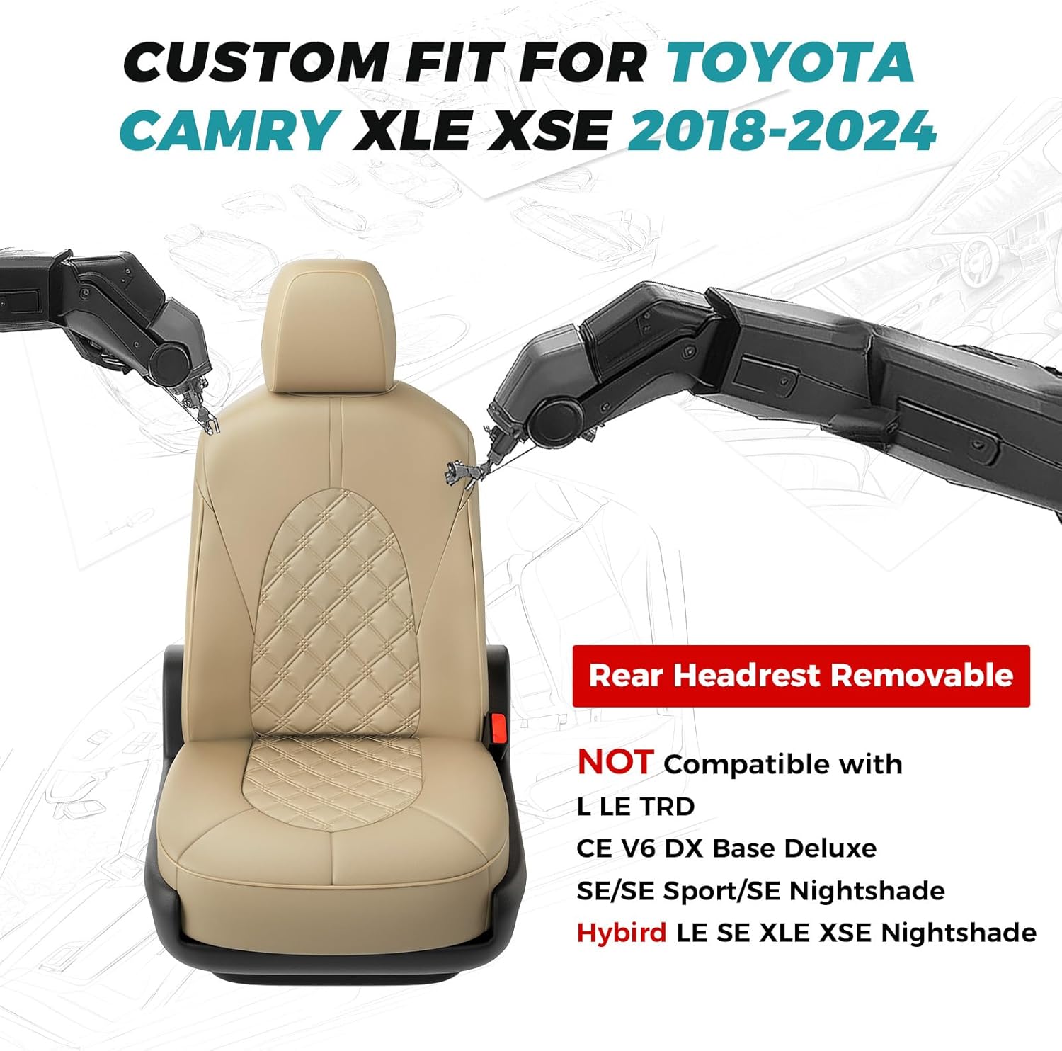 - ăCustom Car Seat Covers 1:1ă: Precisely cut and custom tailored to camry seat covers for a glove-like fit. Exclusively fit for Toyota Camry Seat Covers XLE XSE V6 2018 2019 2020 2021 2022 2023 2024(NOT fit for Hybrid).