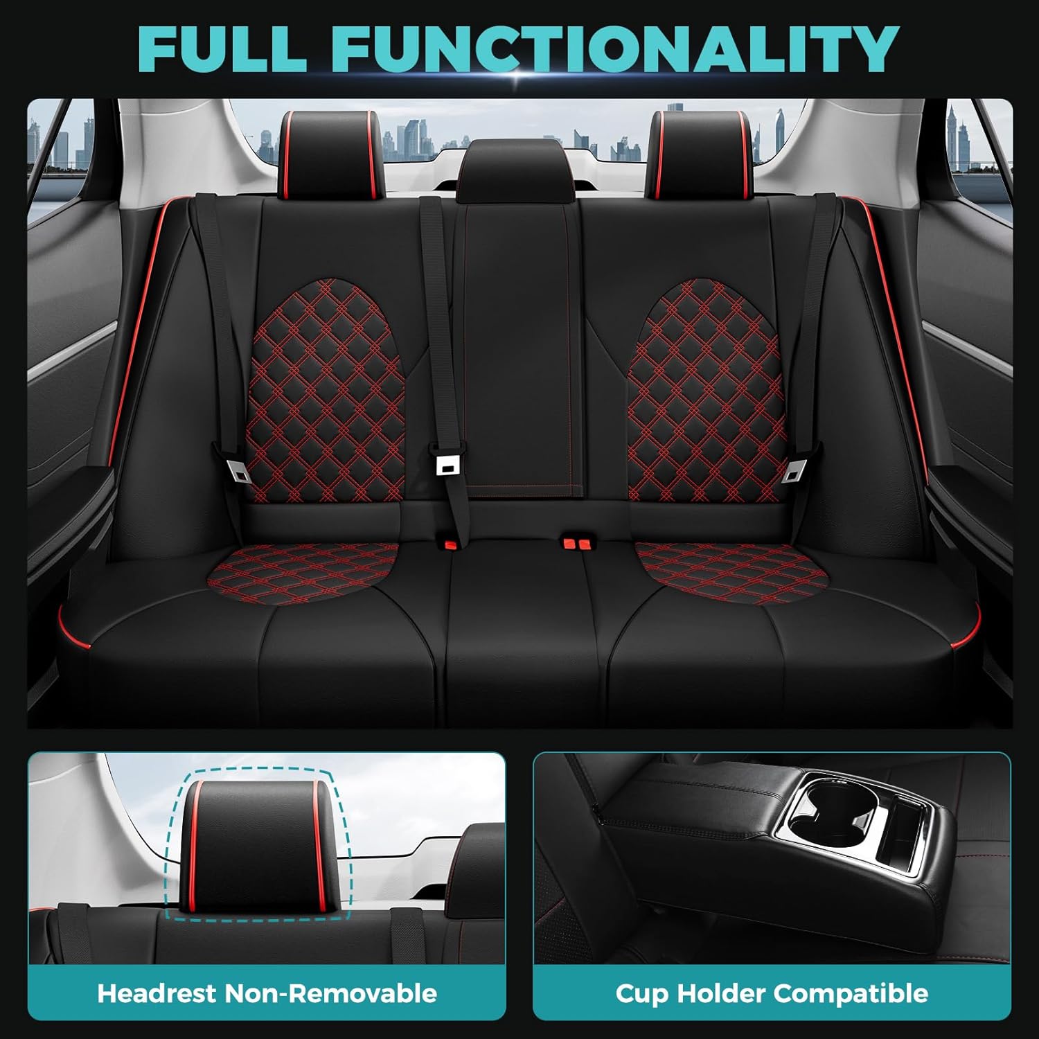 for Toyota Camry Seat Covers LE SE SE Nightshade 2018 2019 2020 2021 2022 2023 2024 - Custom Car Seat Covers Full Set, Waterproof Breathable Leather Seat Covers for Cars, Black Red Not Hybrid