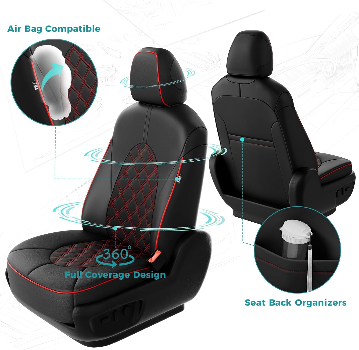- ăMaintain Existing Functionalityă: Tailored to fit snugly all details of car seat covers for Toyota camry and ensure the full function, not affecting at all the use of airbag, armrests, safety belt, child seats and seat adjustments. full wrap front car seat covers come with seat back organizer for improved user convenience.