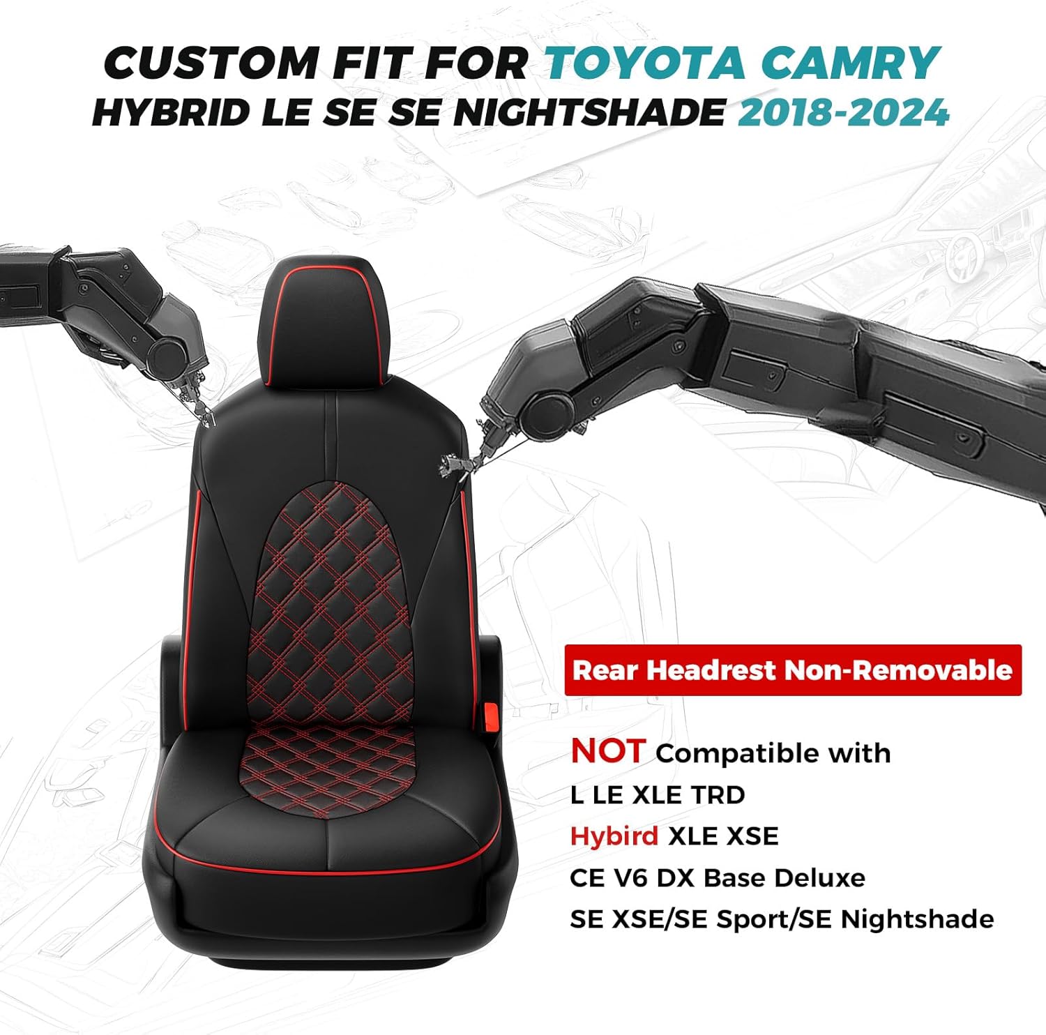 - ăCustom Car Seat Covers 1:1ă: Precisely cut and custom tailored to camry seat covers for a glove-like fit. Exclusively fit for Toyota Camry Seat Covers Hybrid LE SE 2018 2019 2020 2021 2022 2023 2024.