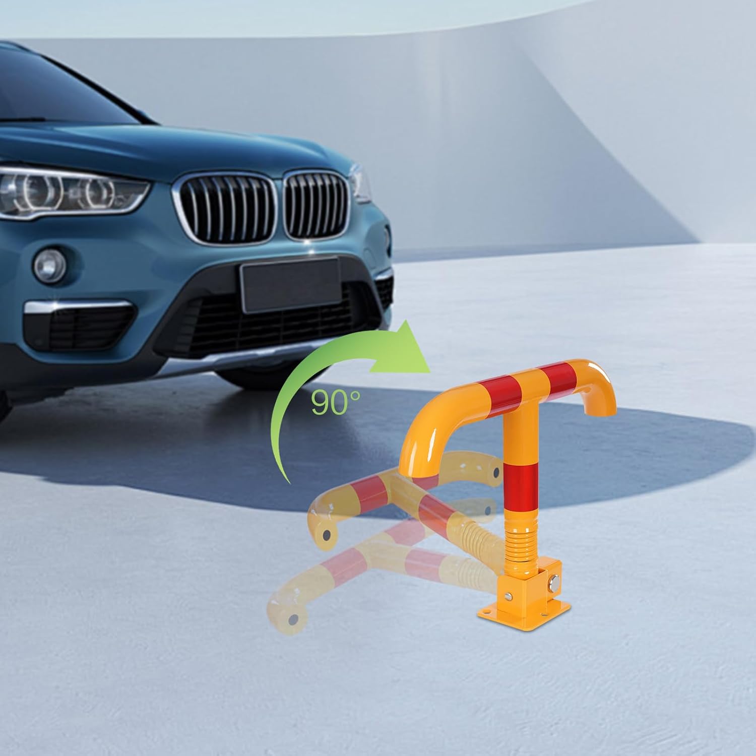 - 🔐DURABLE - This Parking Stopper For Garage is made of High-quality durable Q195 material tested to last, which has high hardness, high strength and durability to withstand violently destroy, more resistant to pressure and kick capacity. The base is designed with rounded and smooth arc which greatly reduces the tire force when the tire is pressed through the lock to protect the tires