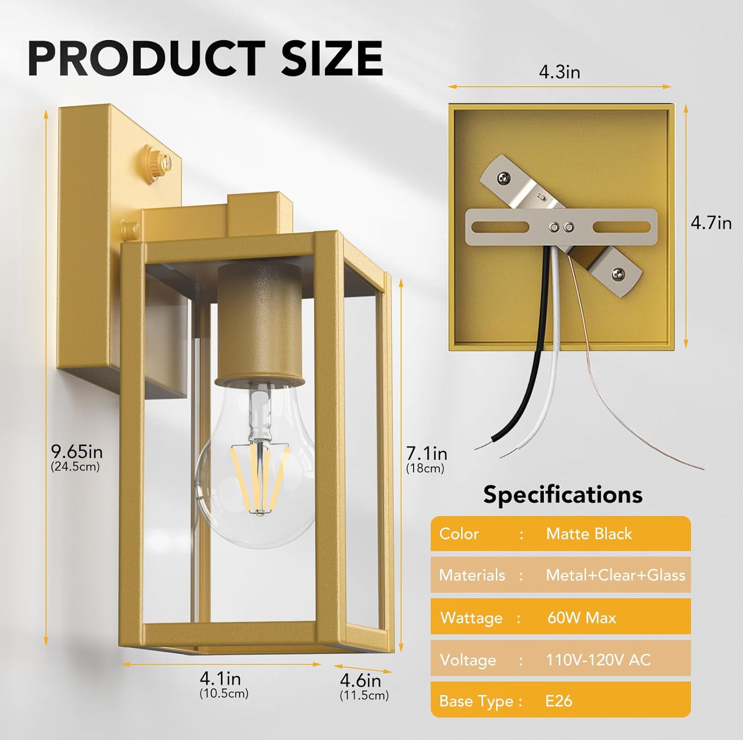 - 🟡E26 BULB BASE: Our wall lantern is compatible with all E26 base bulbs(Max 60W). Including LED, CFL, incandescent, halogen, etc...You can choose different bulbs by your preference to create different lighting atmospheres for your family. (Note: Bulb not included)