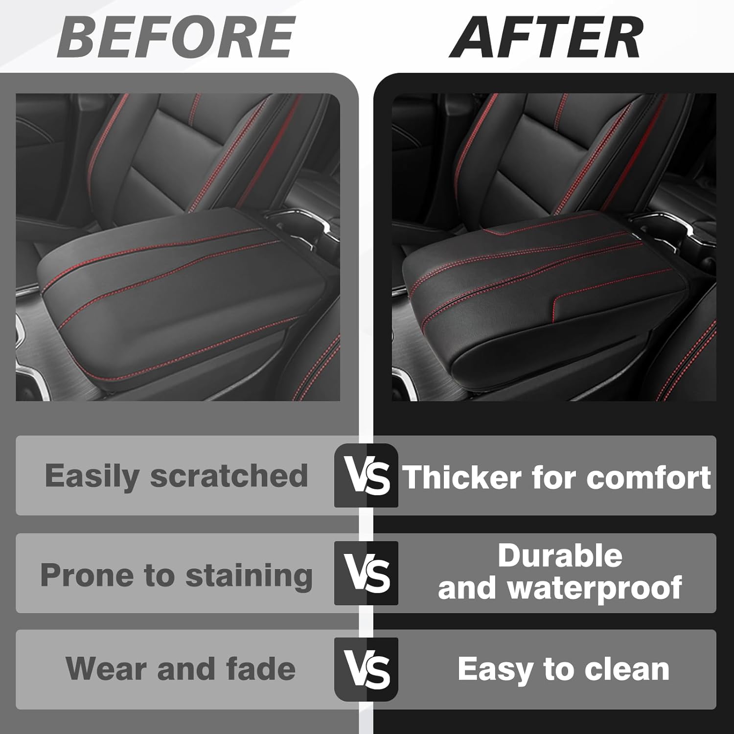 - Unique Design: Designed according to the OEM element to make it match your vehicle perfectly and even better. Our armrest cover is crafted with high-quality Vegan Leather and an extra layer of foam, which is skin-friendly, breathable and soft.