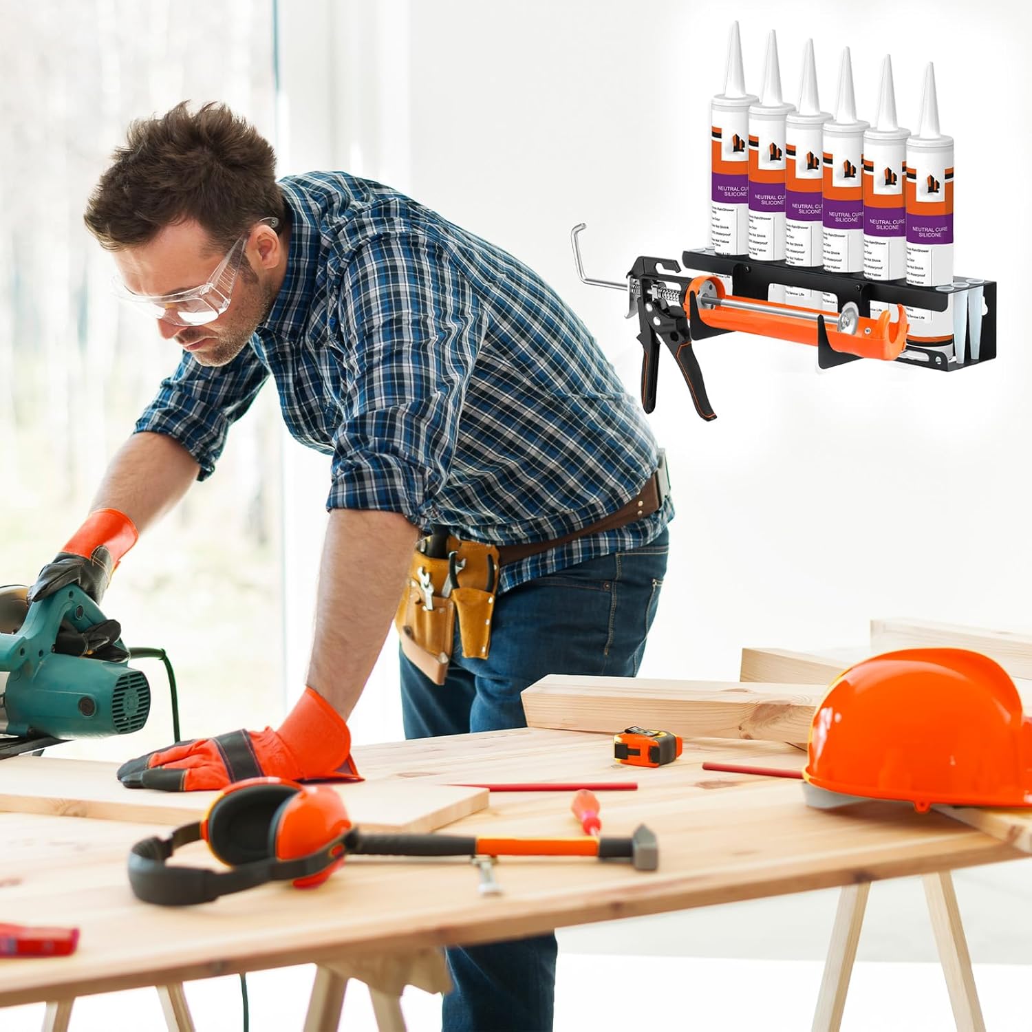 - Material: Wall mount hand caulking gun storage rack is made of metal iron, with a thickened base and a rust proof coating on the surface, which is sturdy, durable and heavy duty