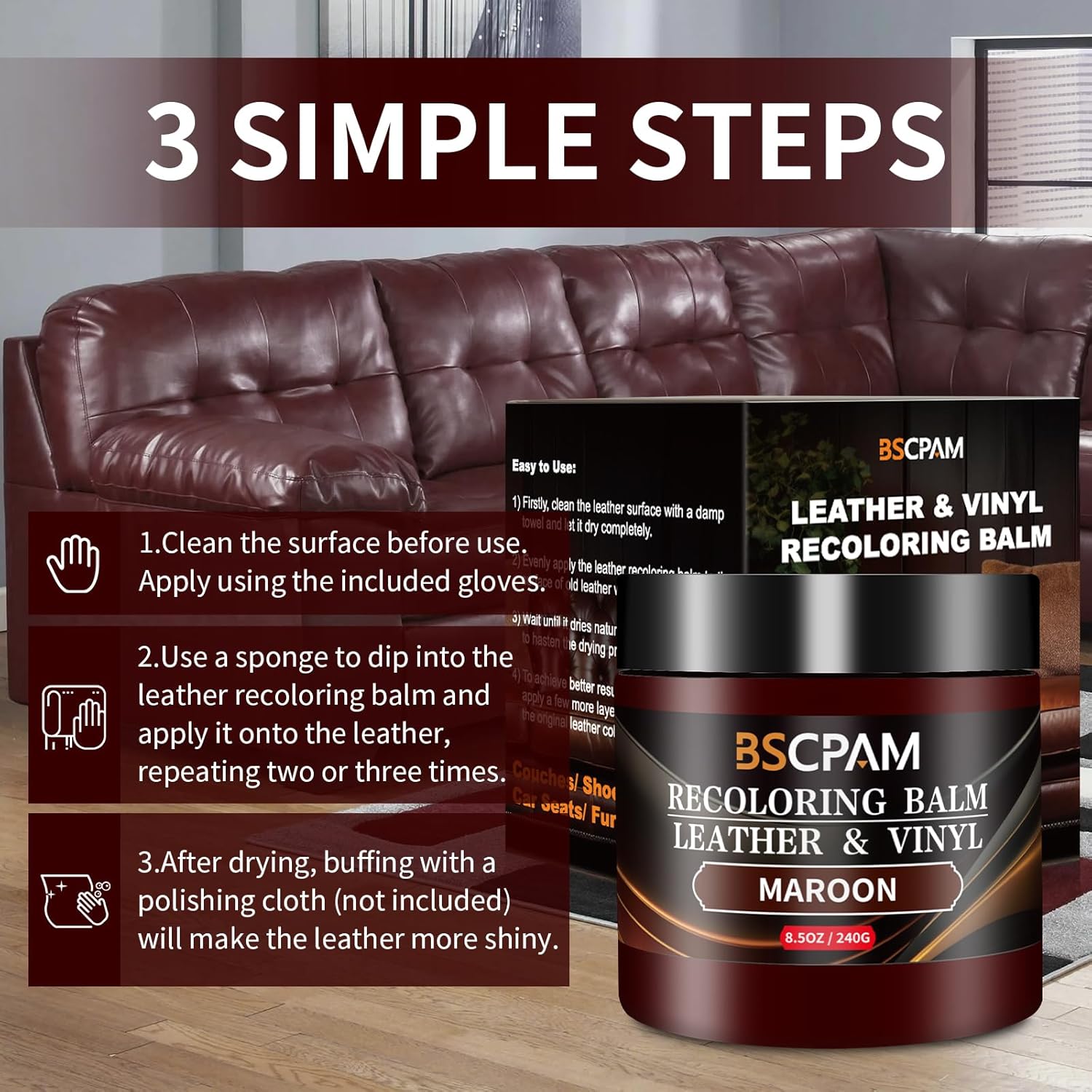 - Professional Leather Recoloring Balm: BSCPAM advanced leather repair gel is cream utilizes an advanced formula,effectively repairs scratches, cracks, and wear on the surface of leather, restoring its original appearance.Its special formula can penetrate the leather fibers, effectively repairing surface scratches, cracks, and wear while providing an additional protective layer to prevent future damage, helping to extend the lifespan of leather items