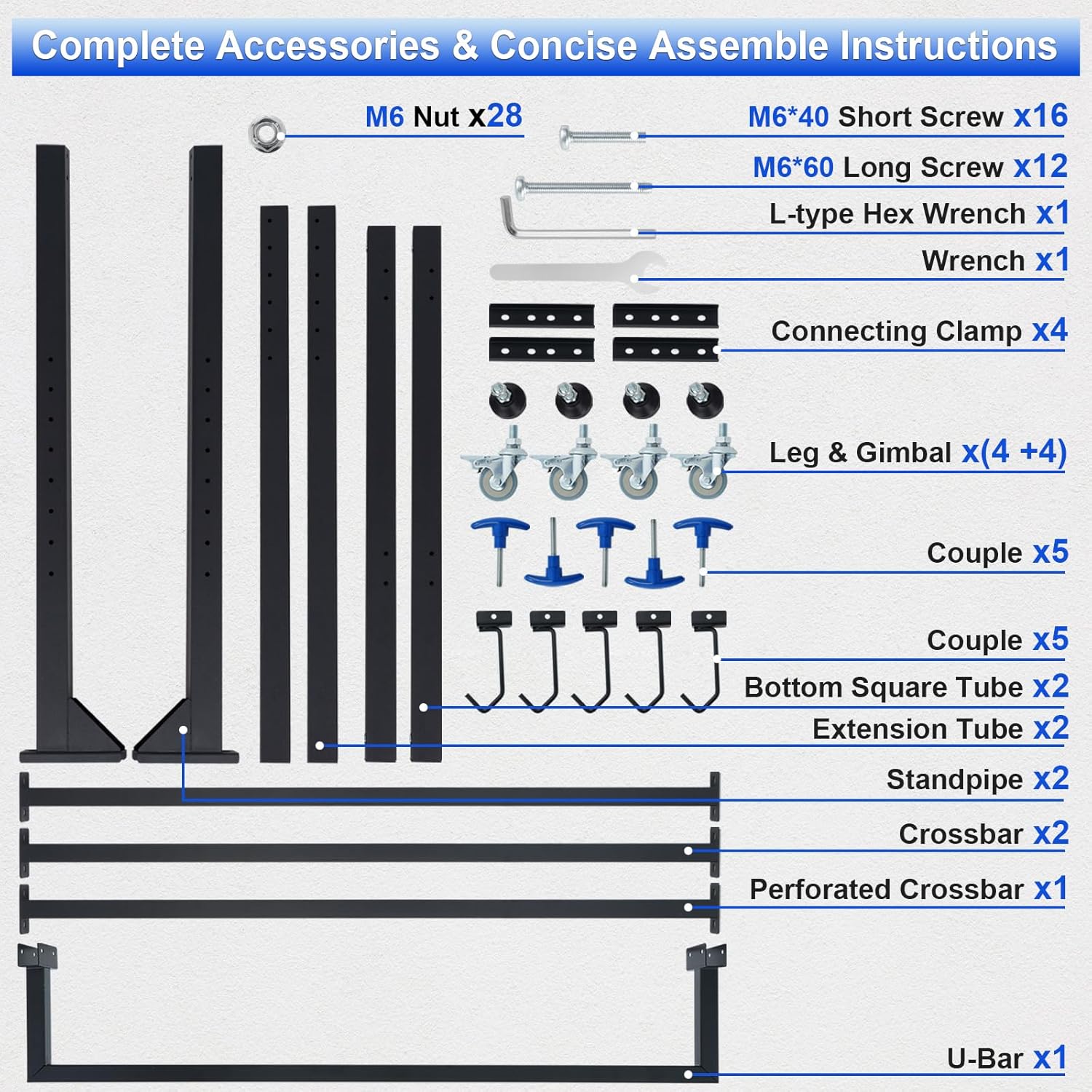 - [Easy to Install] - Independent bike rack, no need to damage your walls for installation. Standardized processing hardware, detailed instructions, and a complete set of accessories can make it easy for you to assemble. The bottom is equipped with anti slip rubber support feet and brake pulleys, allowing you to choose the movable method.