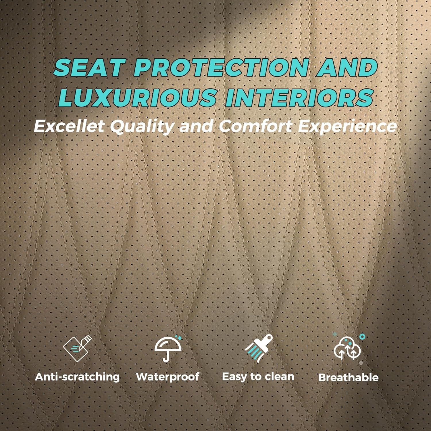 - Faux Leather - Our car seat covers are made from faux Nappa leather, providing superior protection for car seat covers. Designed with comfort, aesthetics, and longevity in mind, these leather seat covers are also waterproof, stain-resistant, and easy to clean. They are an excellent choice for individuals seeking to upgrade or protect their car's upholstery