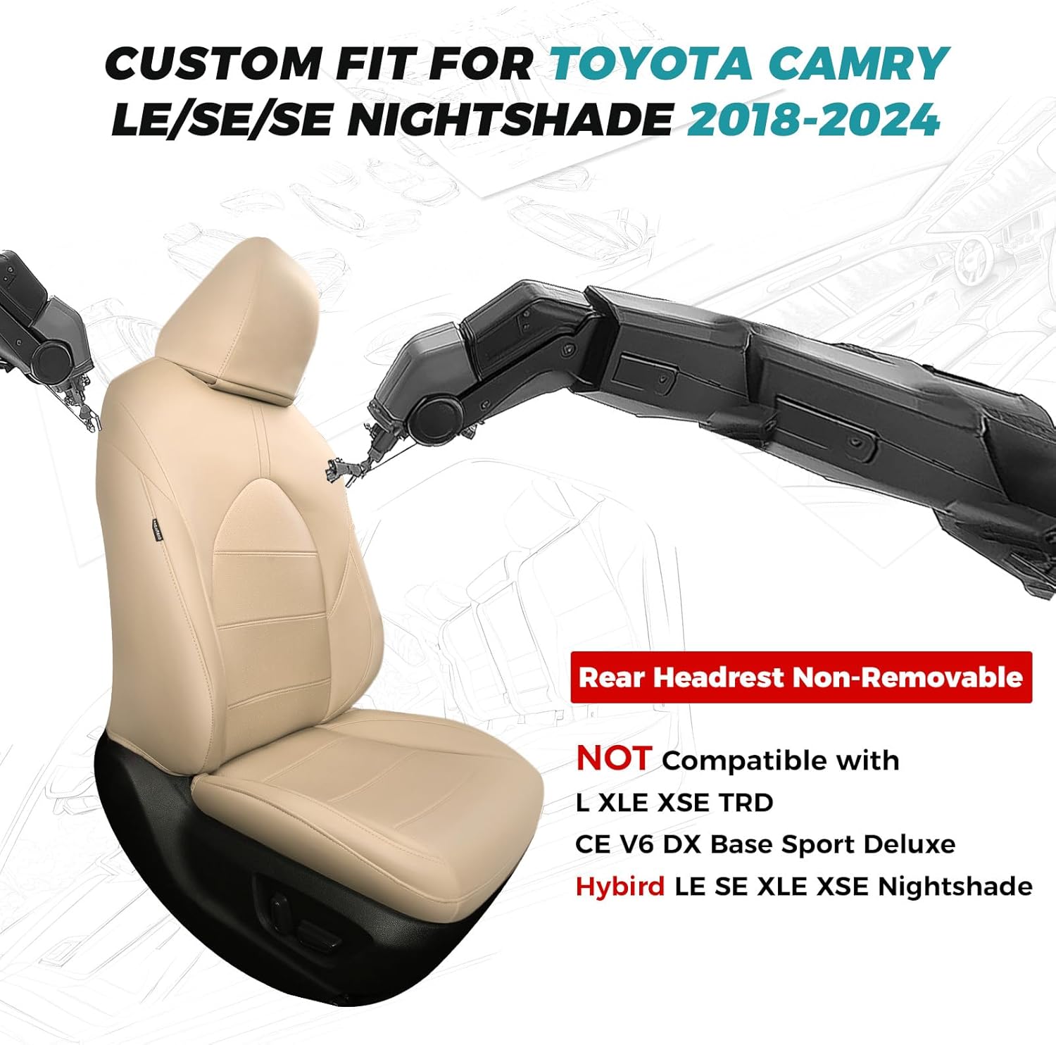 - ăCustom Car Seat Covers 1:1ă: Precisely cut and custom tailored to camry seat covers for a glove-like fit. Exclusively fit for Toyota Camry Seat Covers LE SE SE Nightshade 2018 2019 2020 2021 2022 2023 2024 (NOT fit for Hybrid).