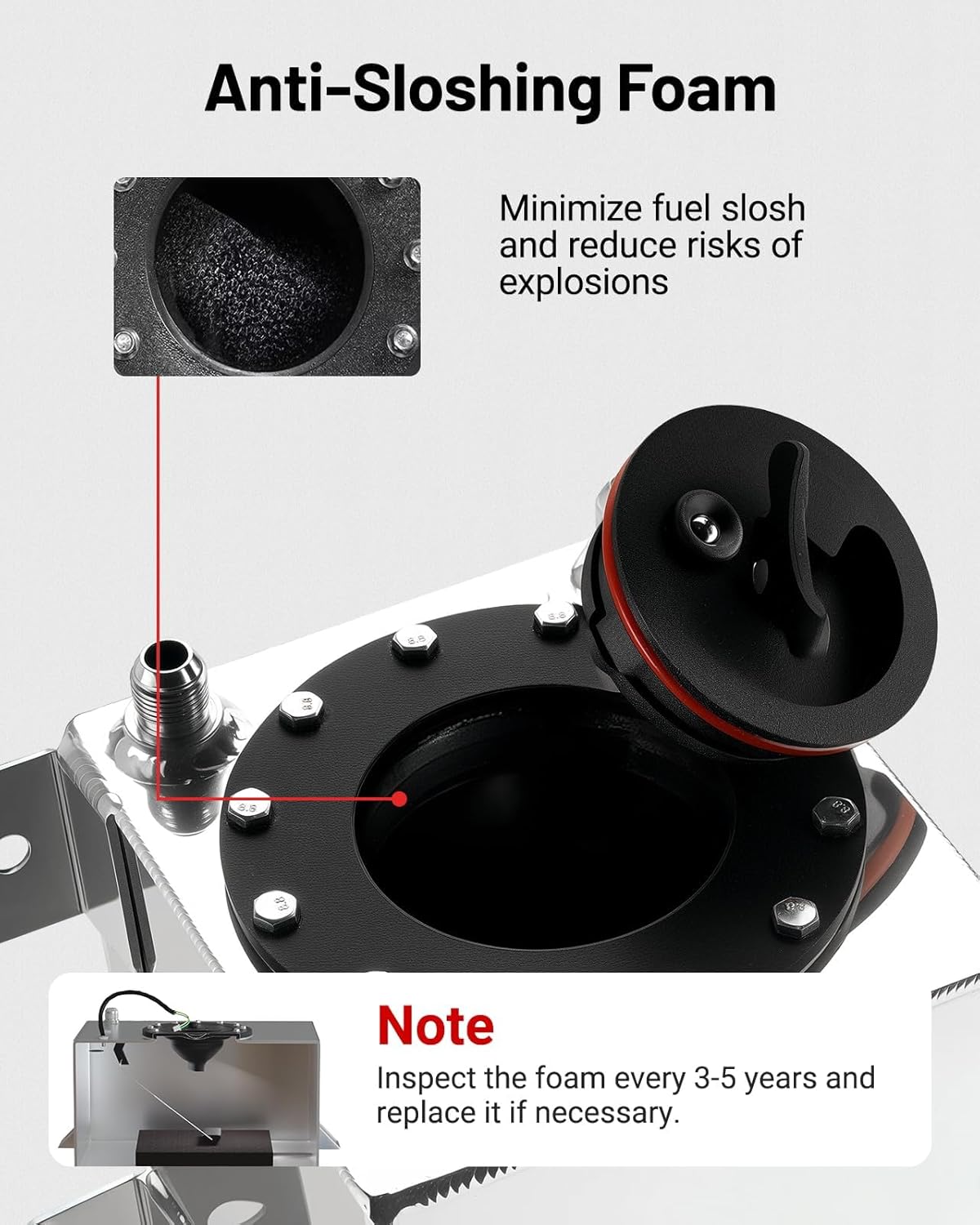 - Note: Anti-slosh foam is built in fuel cell tank to improve fuel delivery and prevent flash back explosions, please check foam regularly for deterioration